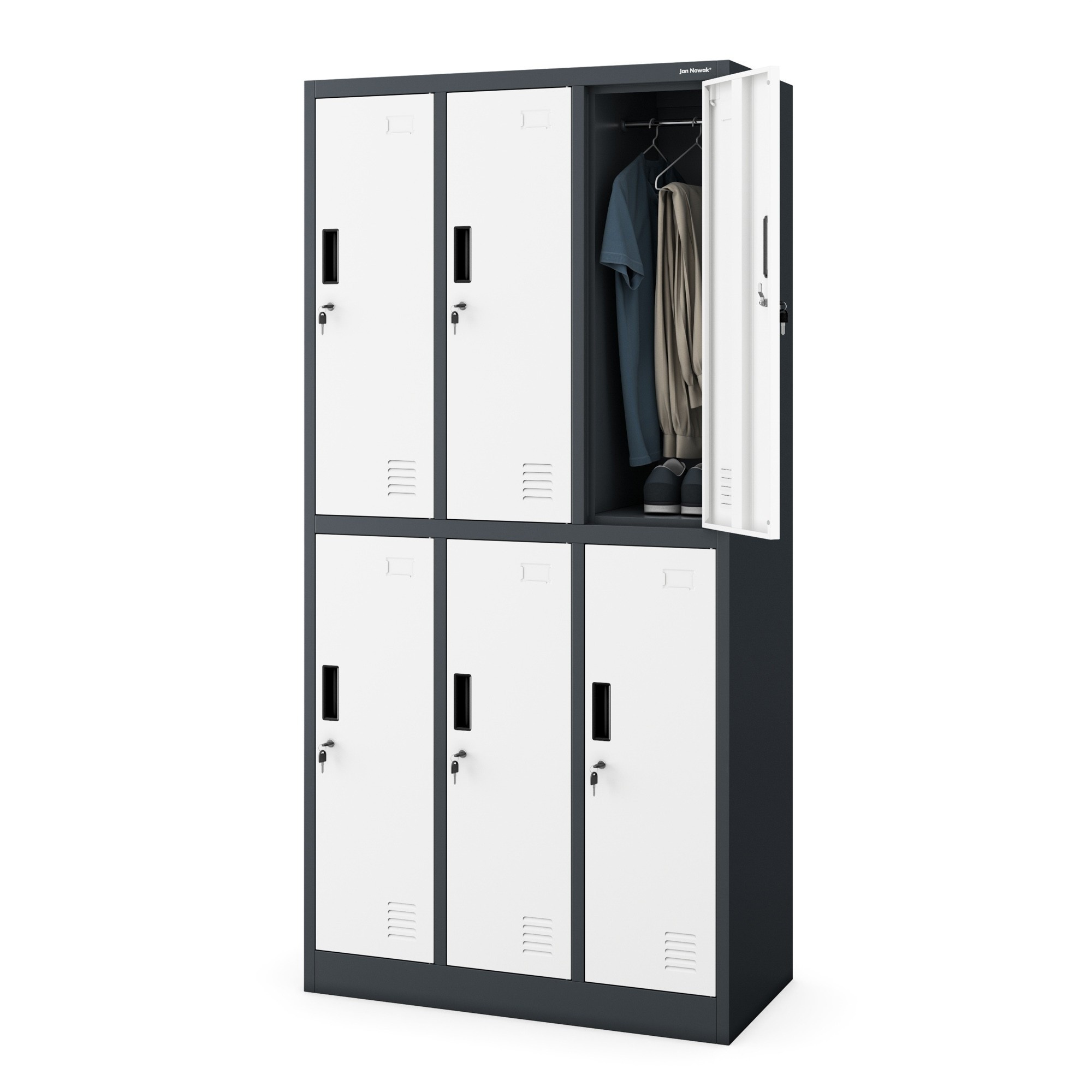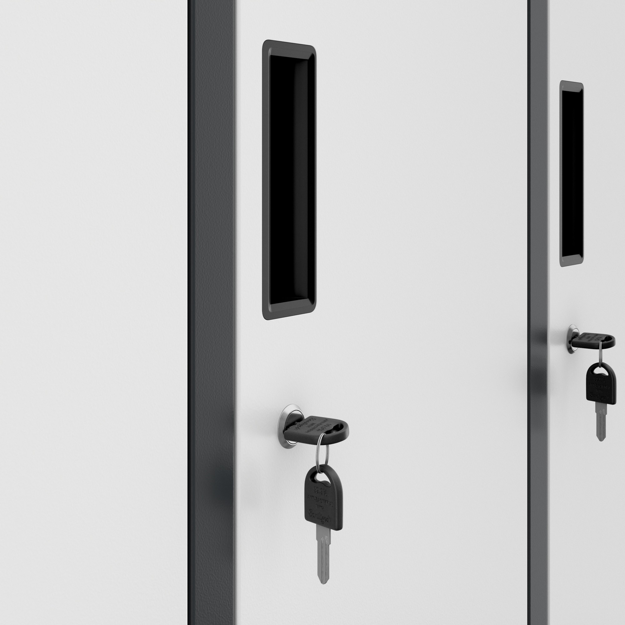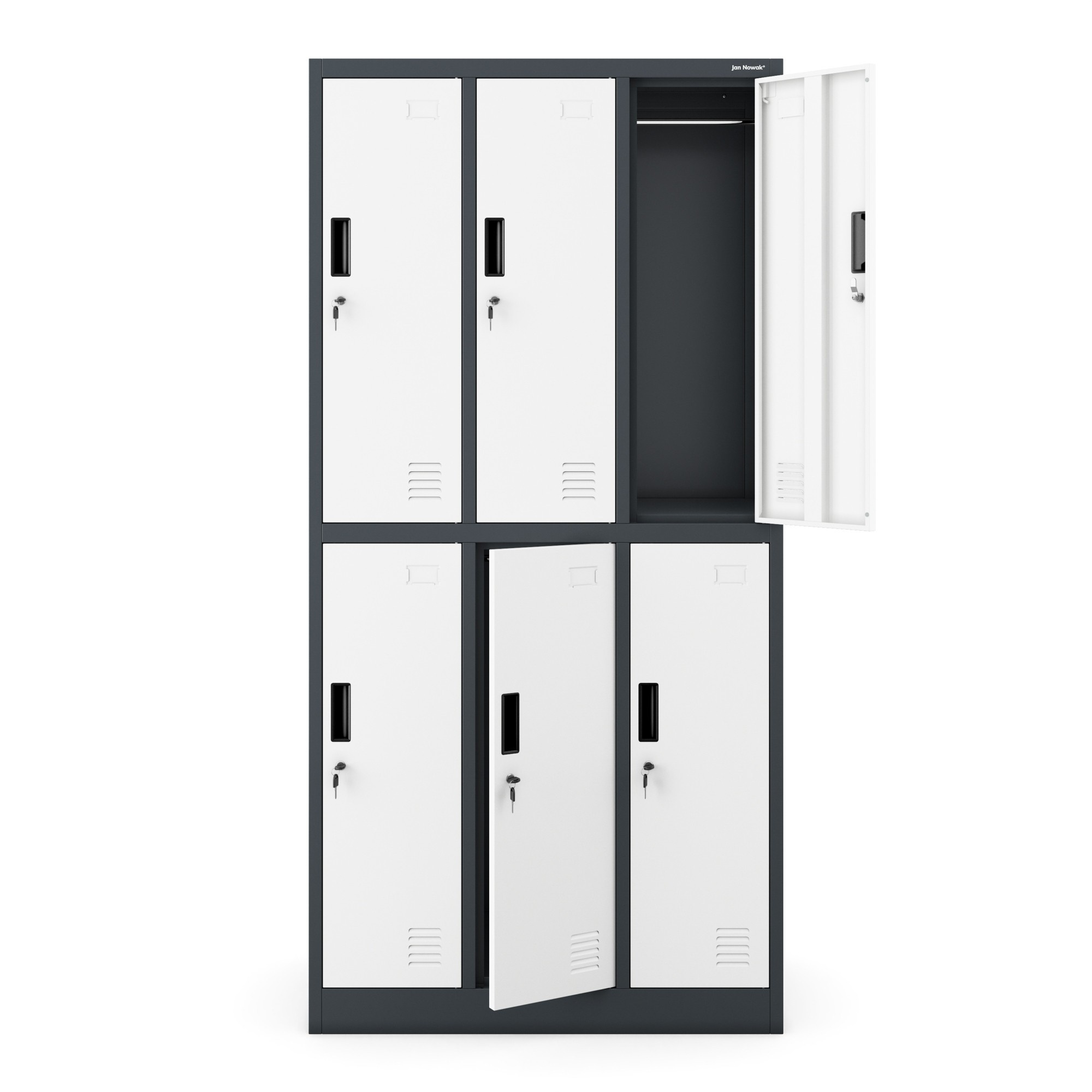 - Bezpečnost a soukromí: Každá z šesti skříněk je vybavena robustním zámkem na klíč, který zajišťuje bezpečné uložení osobních věcí, pracovního oblečení, nástrojů a dokumentů. Můžete si být jisti, že vaše věci jsou v bezpečí a chráněny.