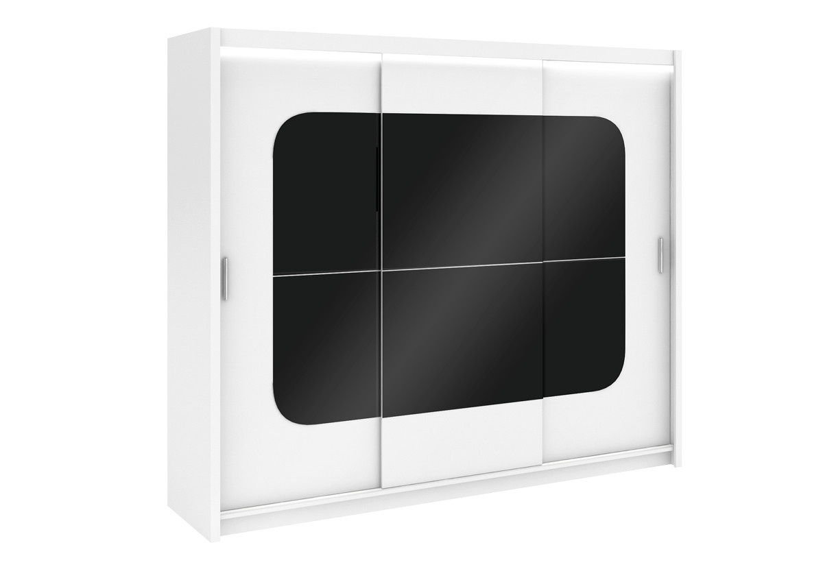 Šatní skříň BARCELONA, bílá/černé sklo
