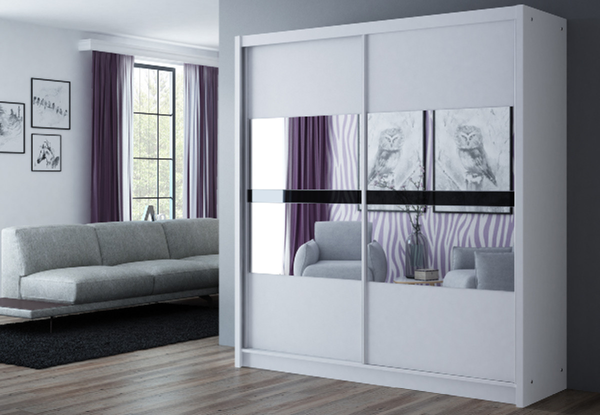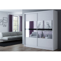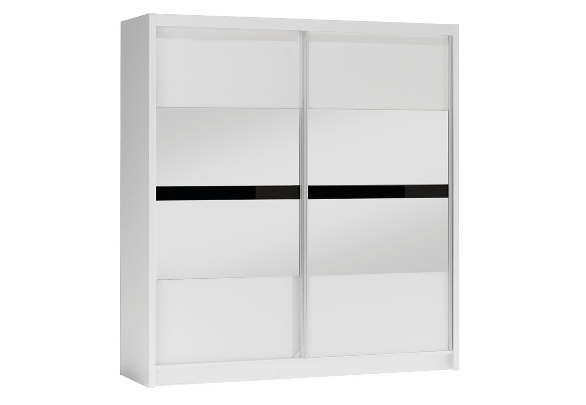 Šatní skříň BATUMI 203, bílá/grafitové zrcadlo/černé sklo