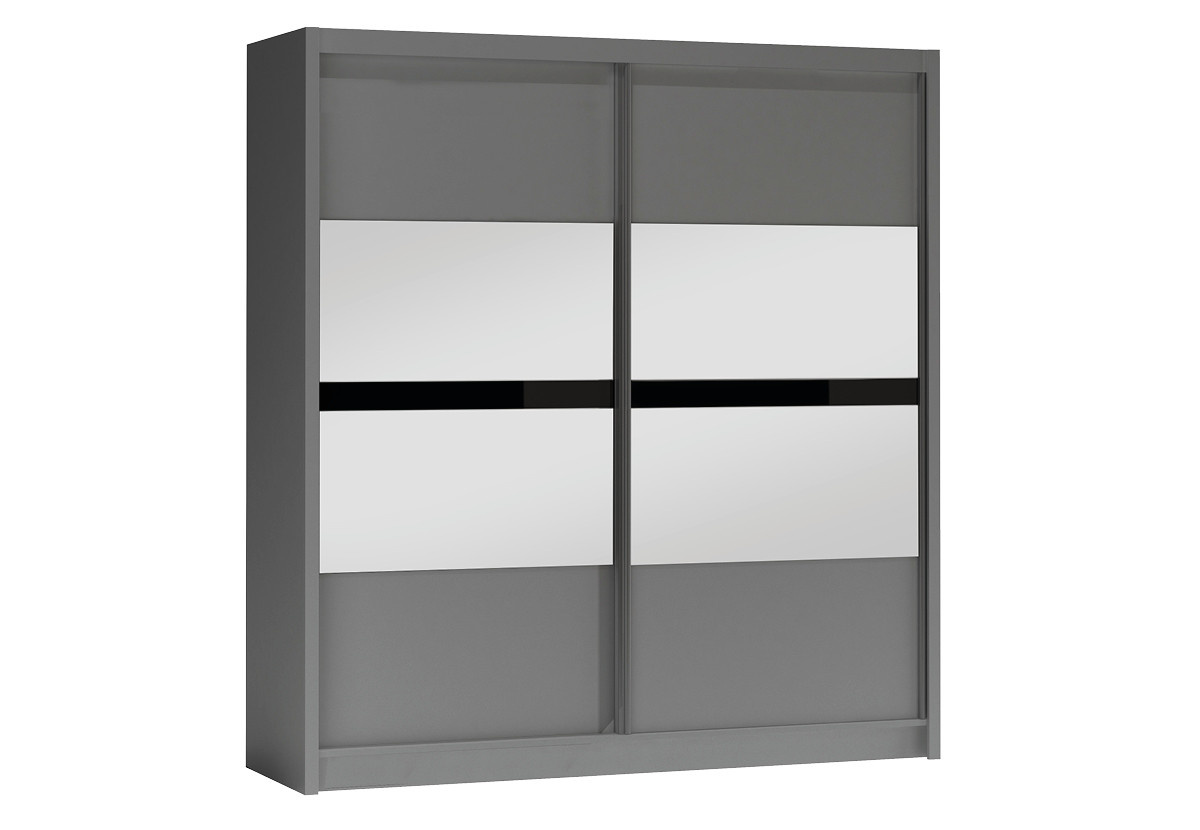 Šatní skříň BATUMI 203, grafit/grafitové zrcadlo/černé sklo