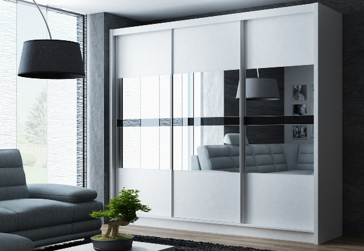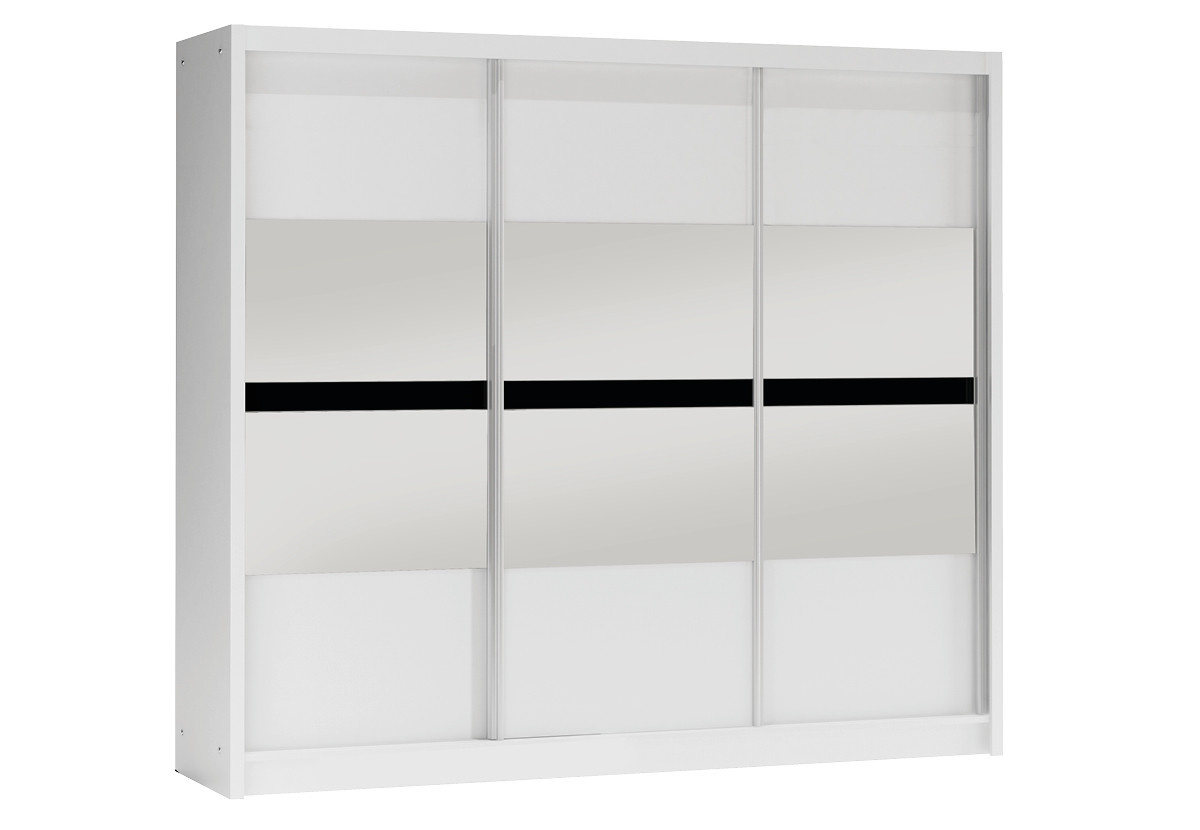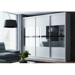 Šatní skříň BATUMI 250, bílá/grafitové zrcadlo/černé sklo