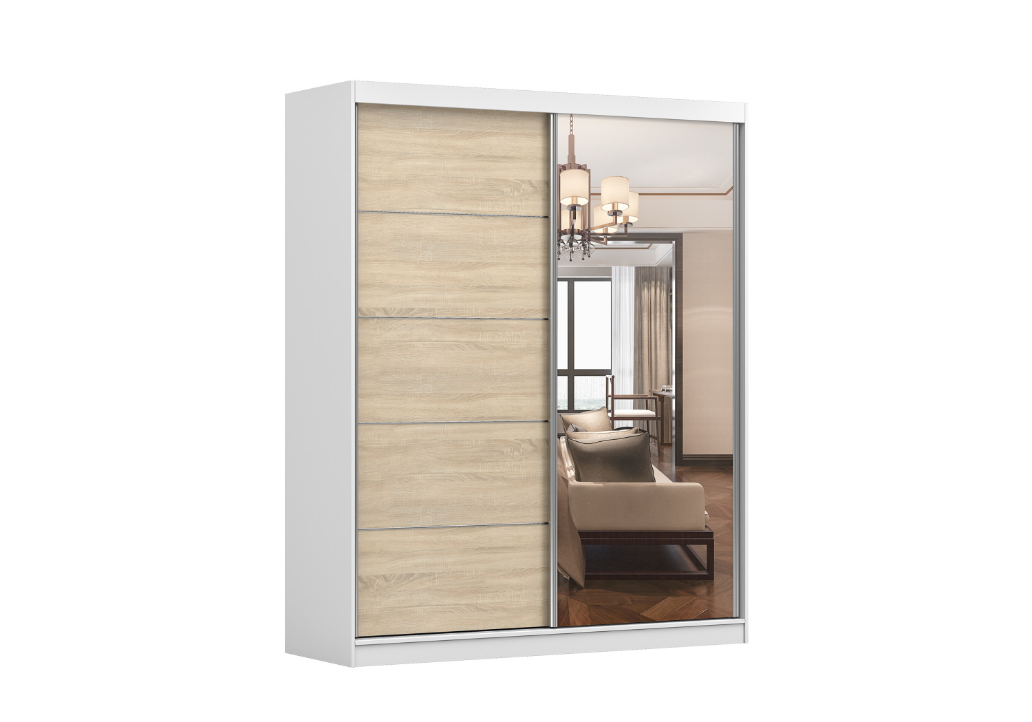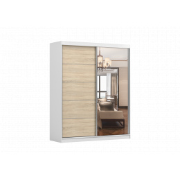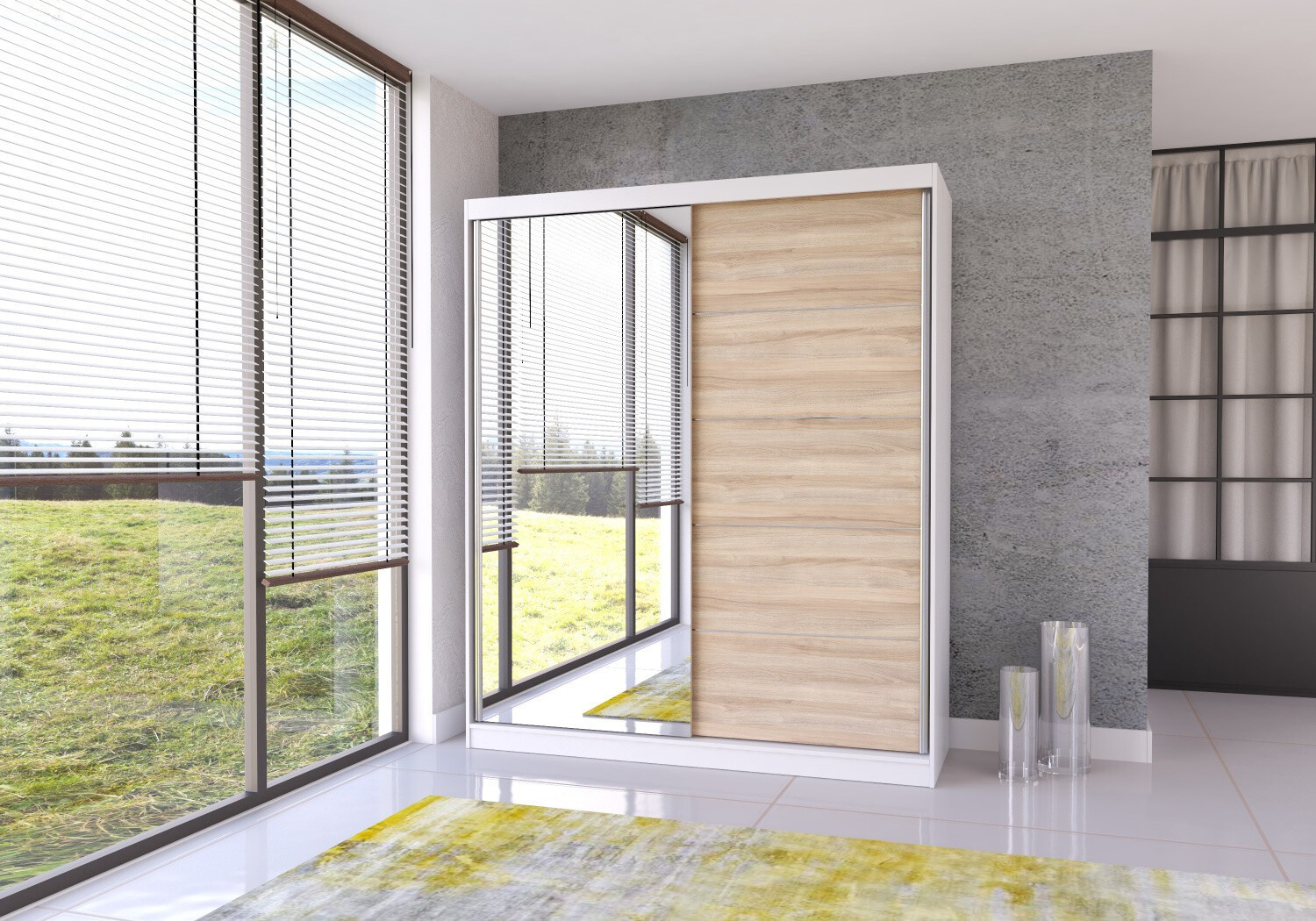 Šatní skříň BELLA 03 se zrcadlem, Bílá mat/Dub Sonoma