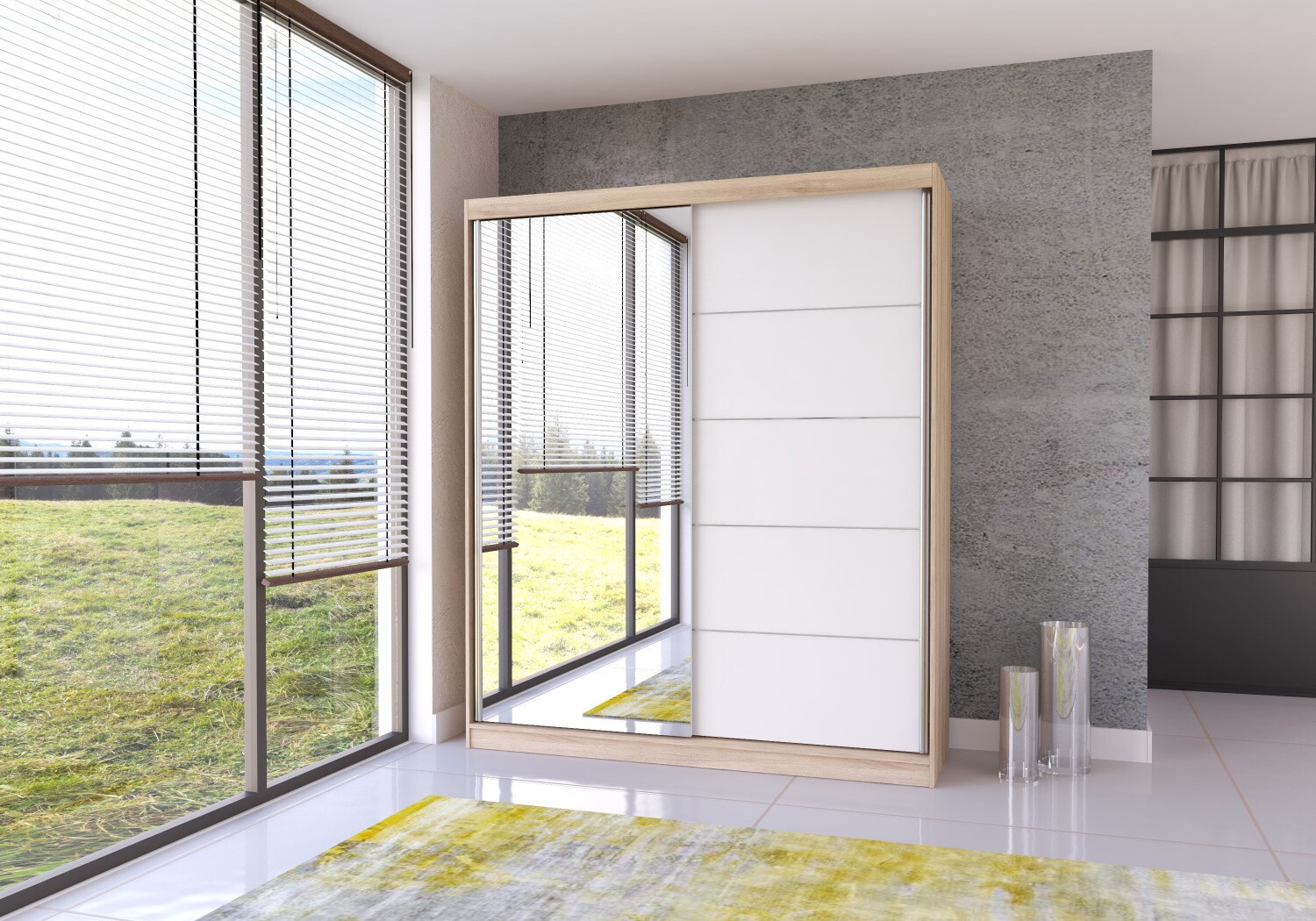 Šatní skříň BELLA 03 se zrcadlem, Dub Sonoma/Bílá