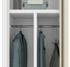 Při návrhu skříně Kacper jsme kladli důraz na každý detail. Hluboké komory s tyčemi na ramínka a dělicími příčkami umožňují uspořádat oděvy tak, aby byly vždy po ruce. Dvě samostatné police poskytují další úložný prostor pro boty, tašky nebo jiné osobní věci. Háčky na oblečení jsou ideální pro zavěšení bund, kabátů nebo ručníků.