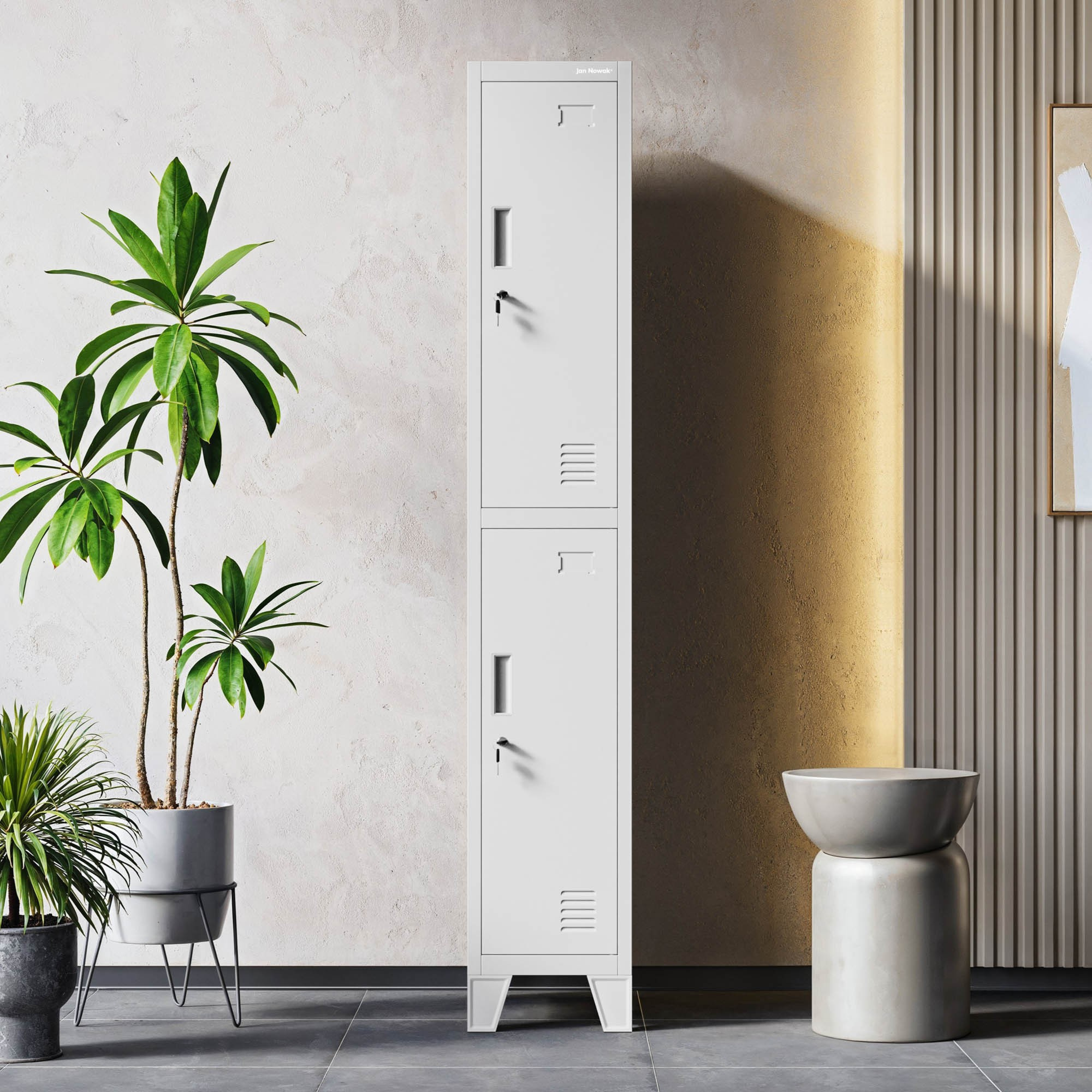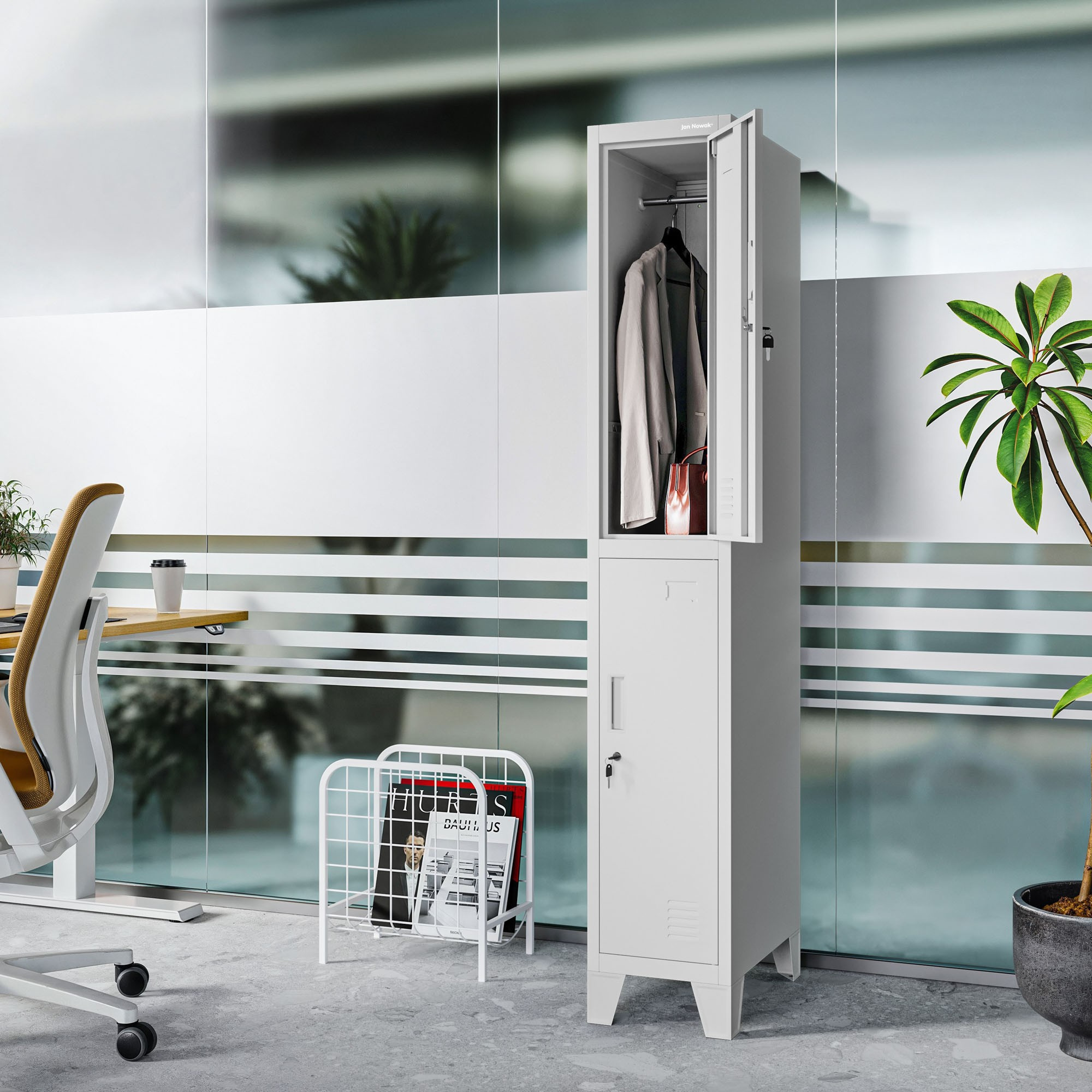 - Každá přihrádka uzamykatelná na klíč: Zajišťuje bezpečnost a ochranu uložených věcí.