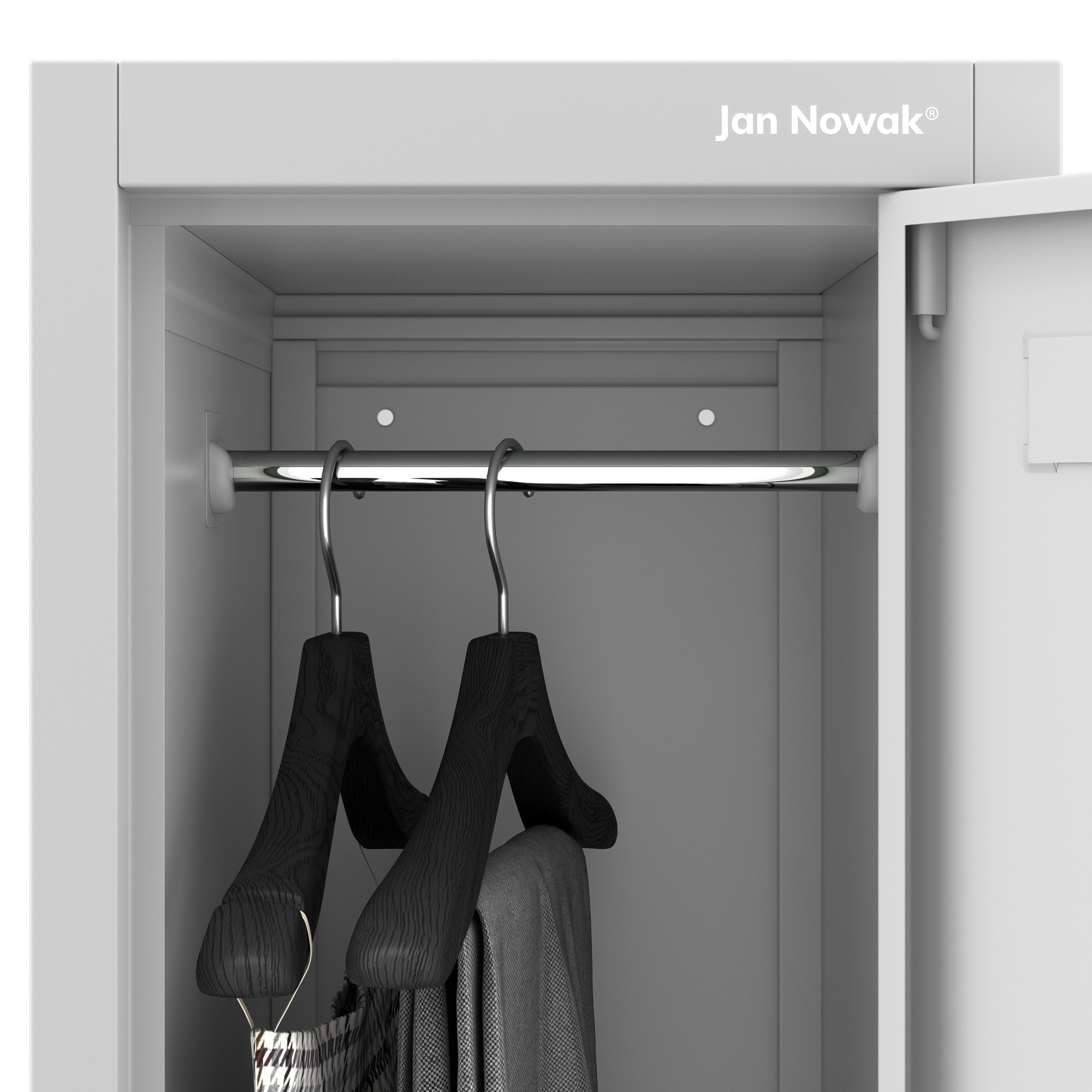 Každá ze dvou přihrádek skříňky BARTEK 1 Plus je vybavena tyčí na ramínka, která umožňuje pohodlné zavěšení oblečení a zabraňuje jeho pomačkání. Kromě toho nabízí skříňka dostatek místa pro uložení osobních věcí, tašky, knih a dalších předmětů. Promyšlené uspořádání vnitřního prostoru usnadňuje udržování pořádku a rychlý přístup ke všem uloženým věcem.
