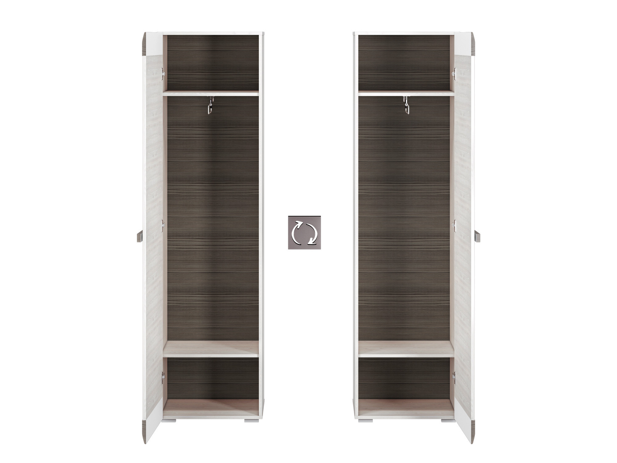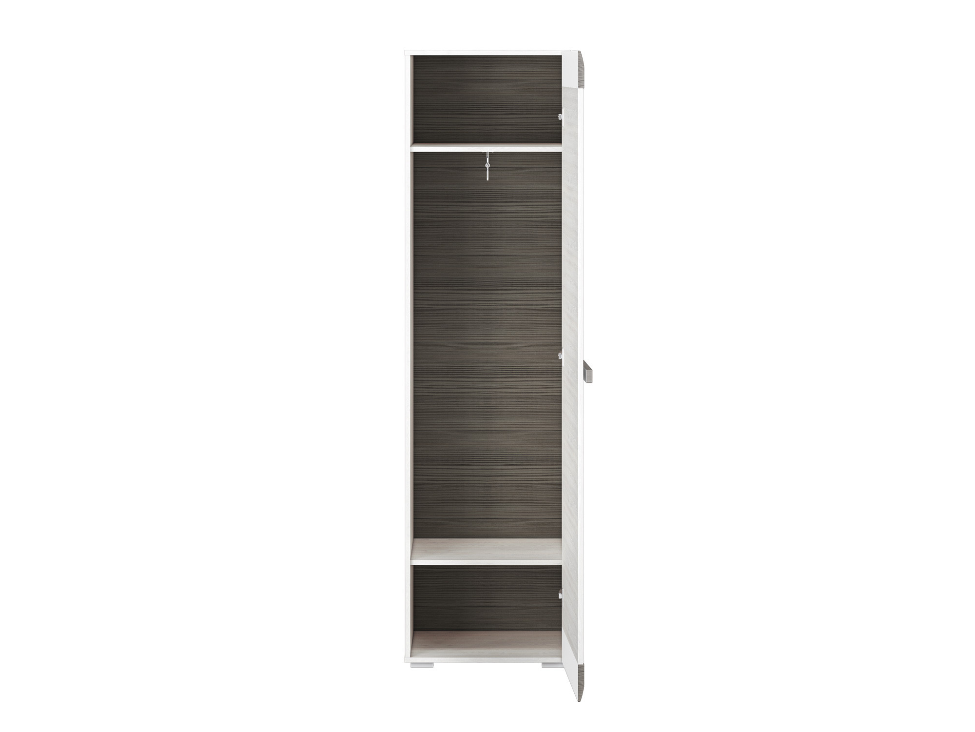 Jednodveřová šatní skříň BLANCO 19 je dokonalou kombinací decentních tvarů a neutrálních světlých barev. Ergonomická šatní skříň vám umožní uložit potřebné oblečení.