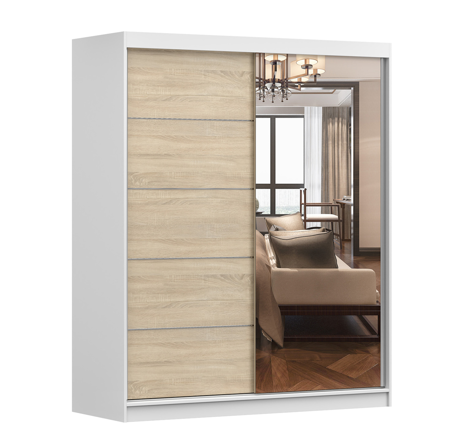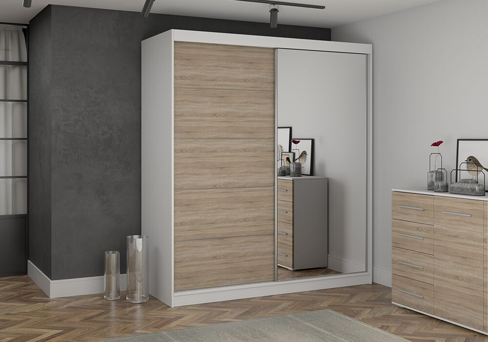 Šatní skříň BONO 05 se zrcadlem, Bílá/Dub Sonoma