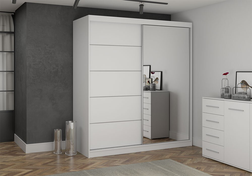 Šatní skříň BONO 05 se zrcadlem, Bílá