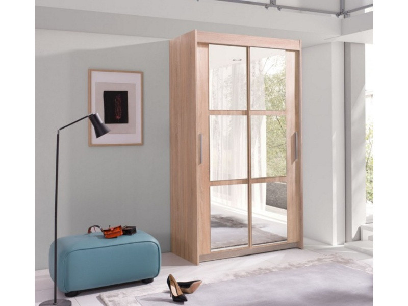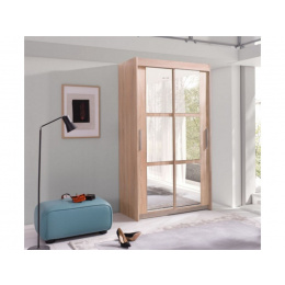 CARO - moderní šatní skříň s posuvnými dveřmi a zrcadlem v barvě sonoma.