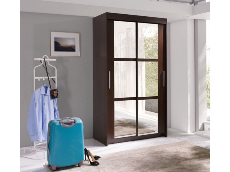 CARO - moderní šatní skříň s posuvnými dveřmi a zrcadlem v barvě venge.