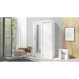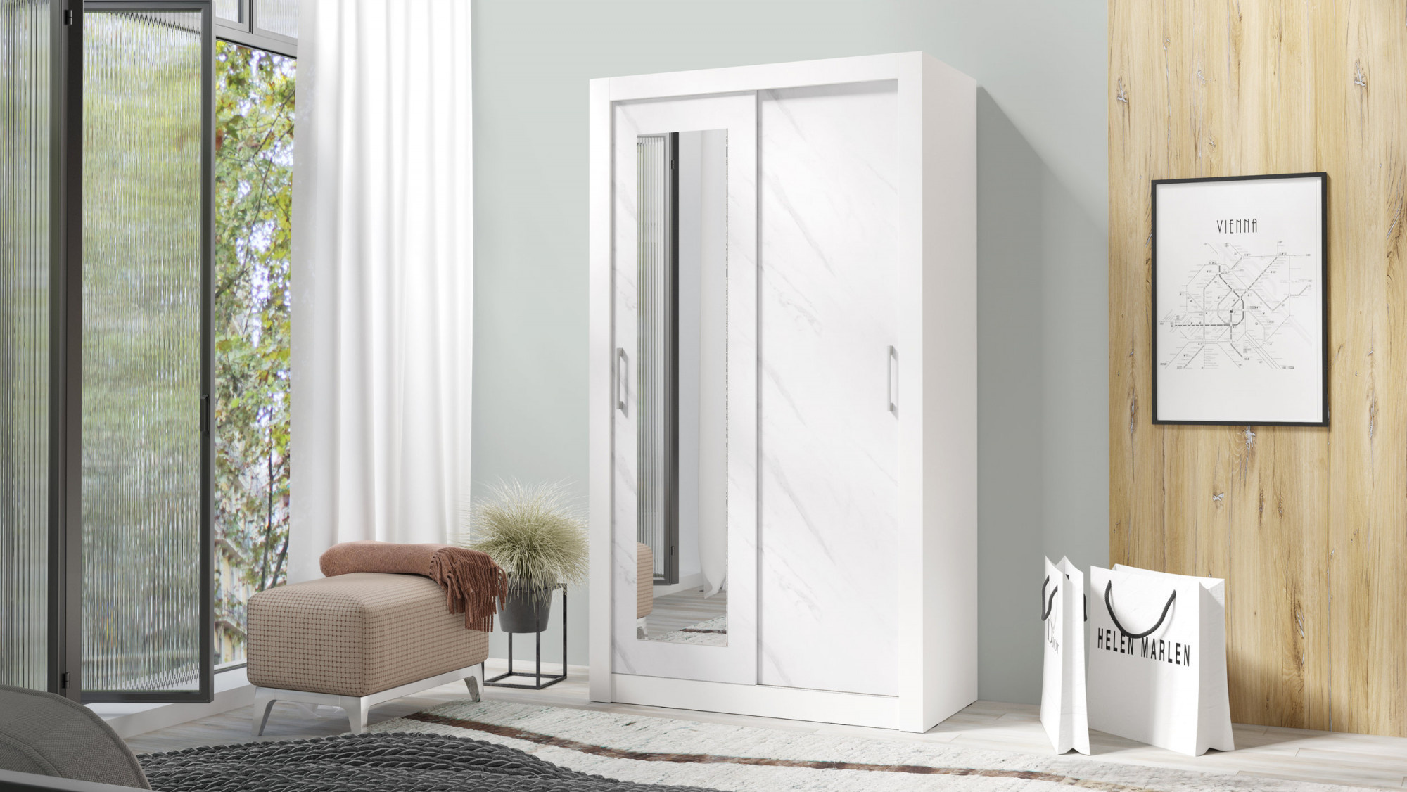 Šatní skříň IN BOX 120 se zrcadlem, Bílá/Bílý mramor