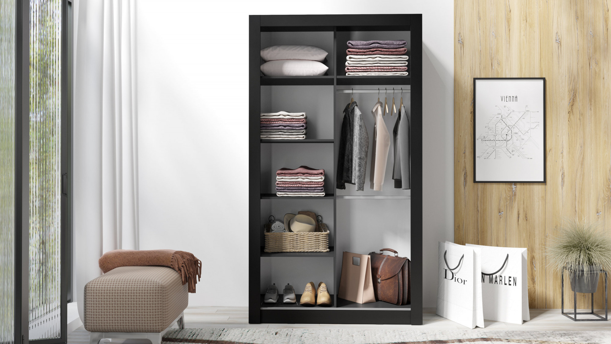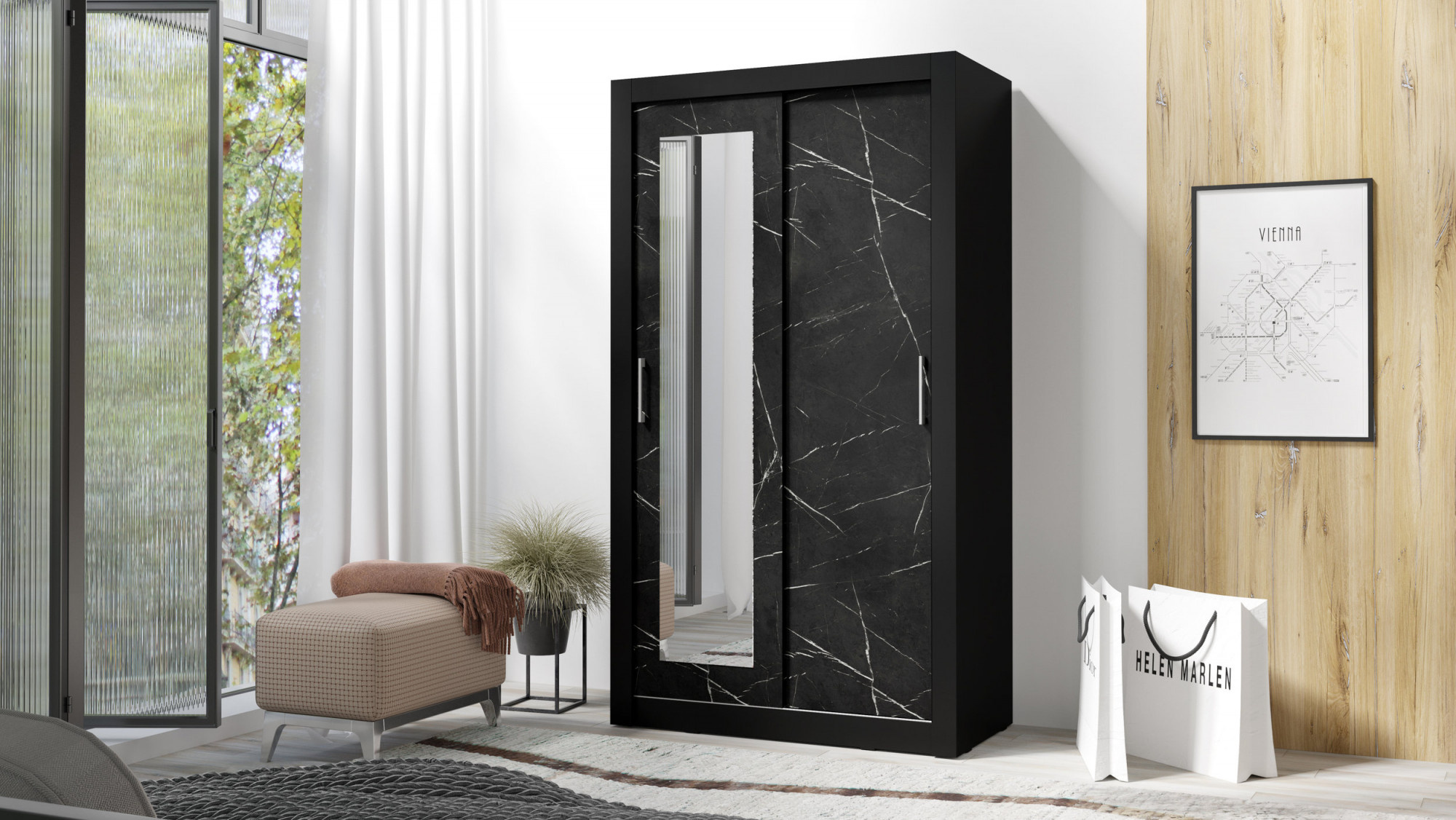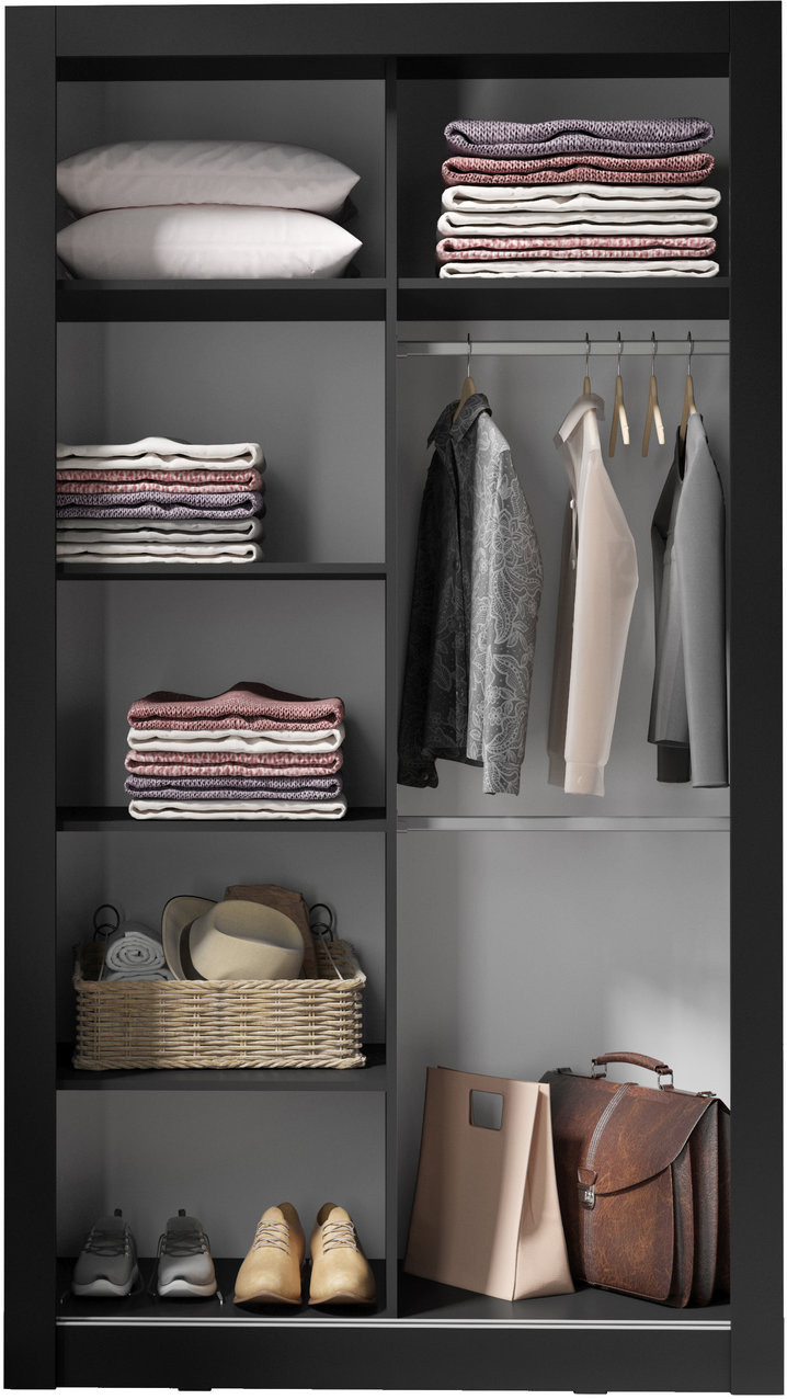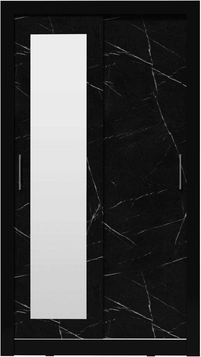 Šatní skříň IN BOX 120 se zrcadlem, Černá/Černý mramor