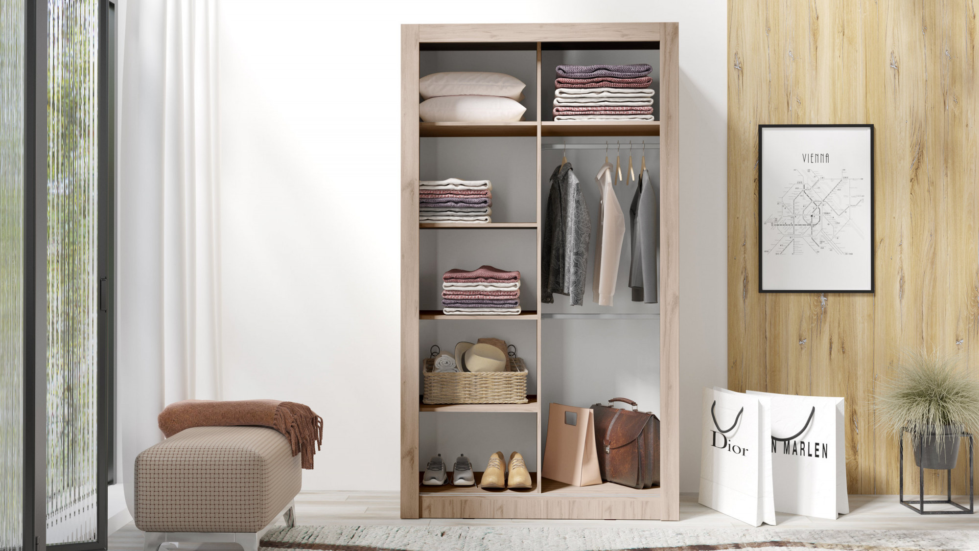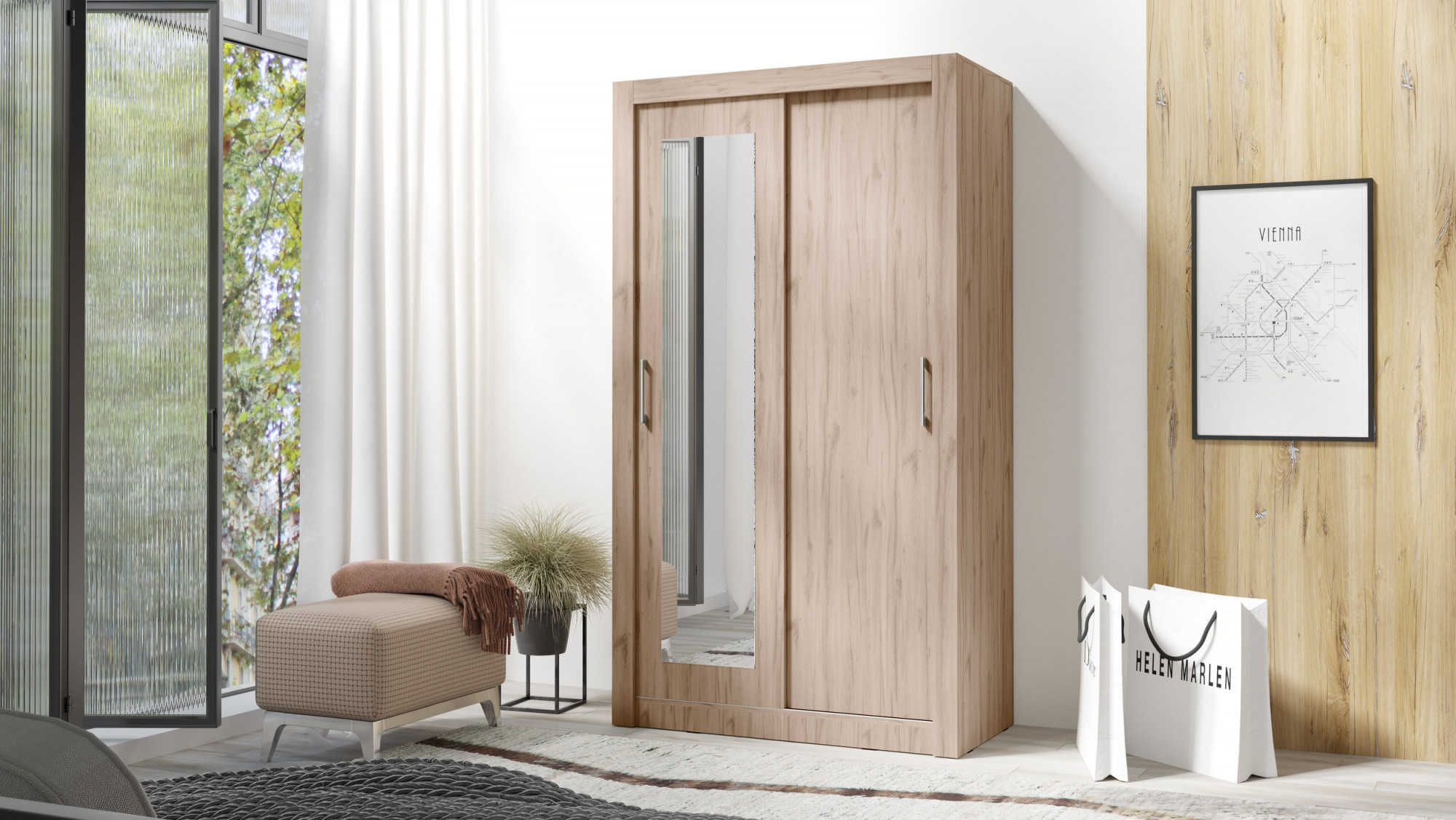 Šatní skříň IN BOX 120 se zrcadlem, Dub Estana
