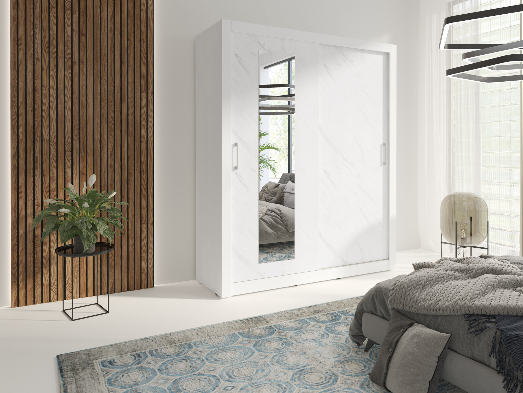 Šatní skříň IN BOX 180 se zrcadlem, Bílá/Bílý mramor
