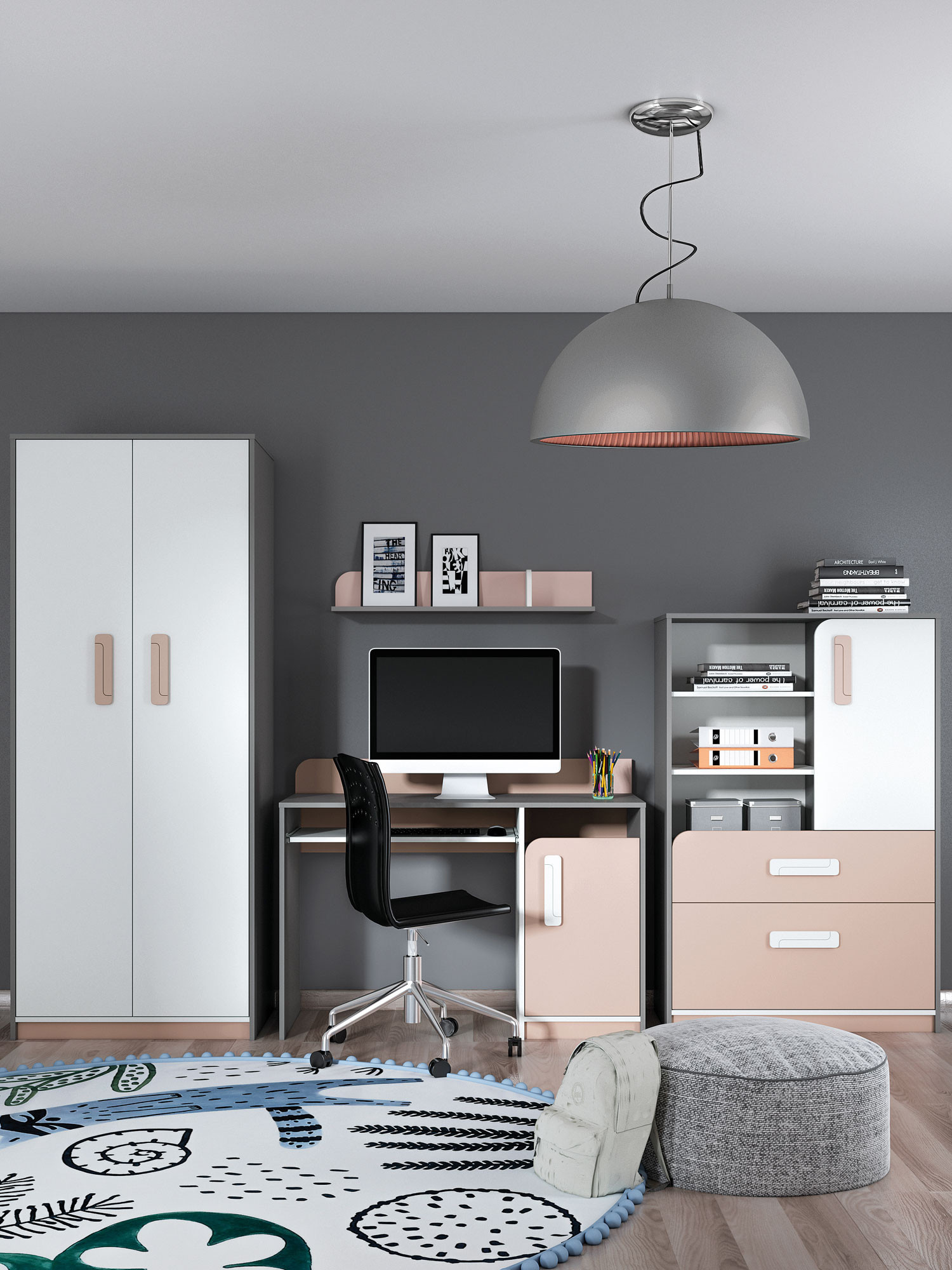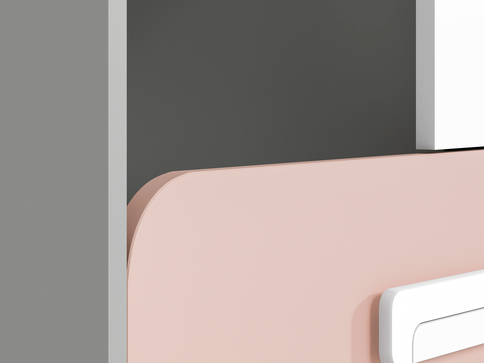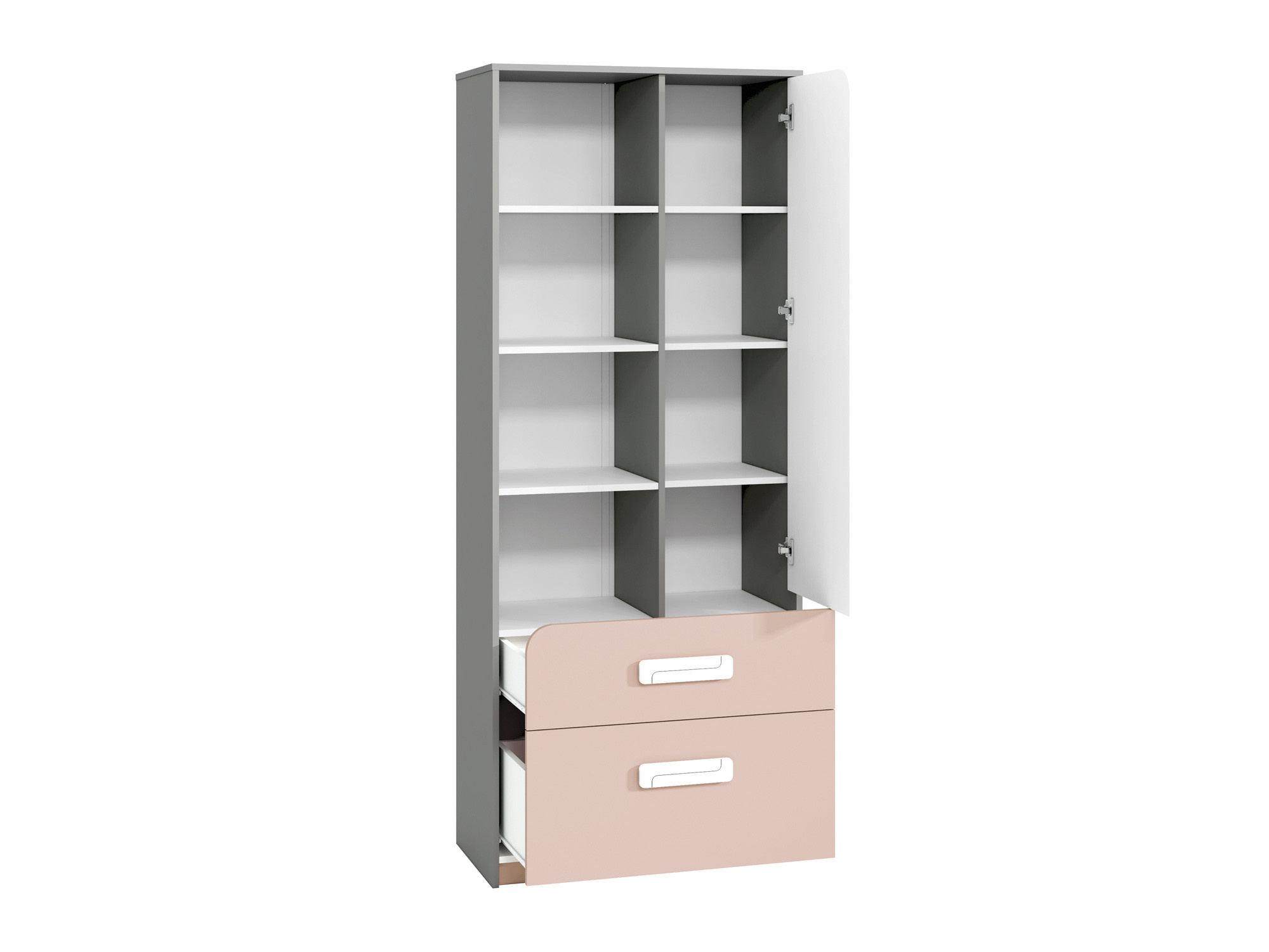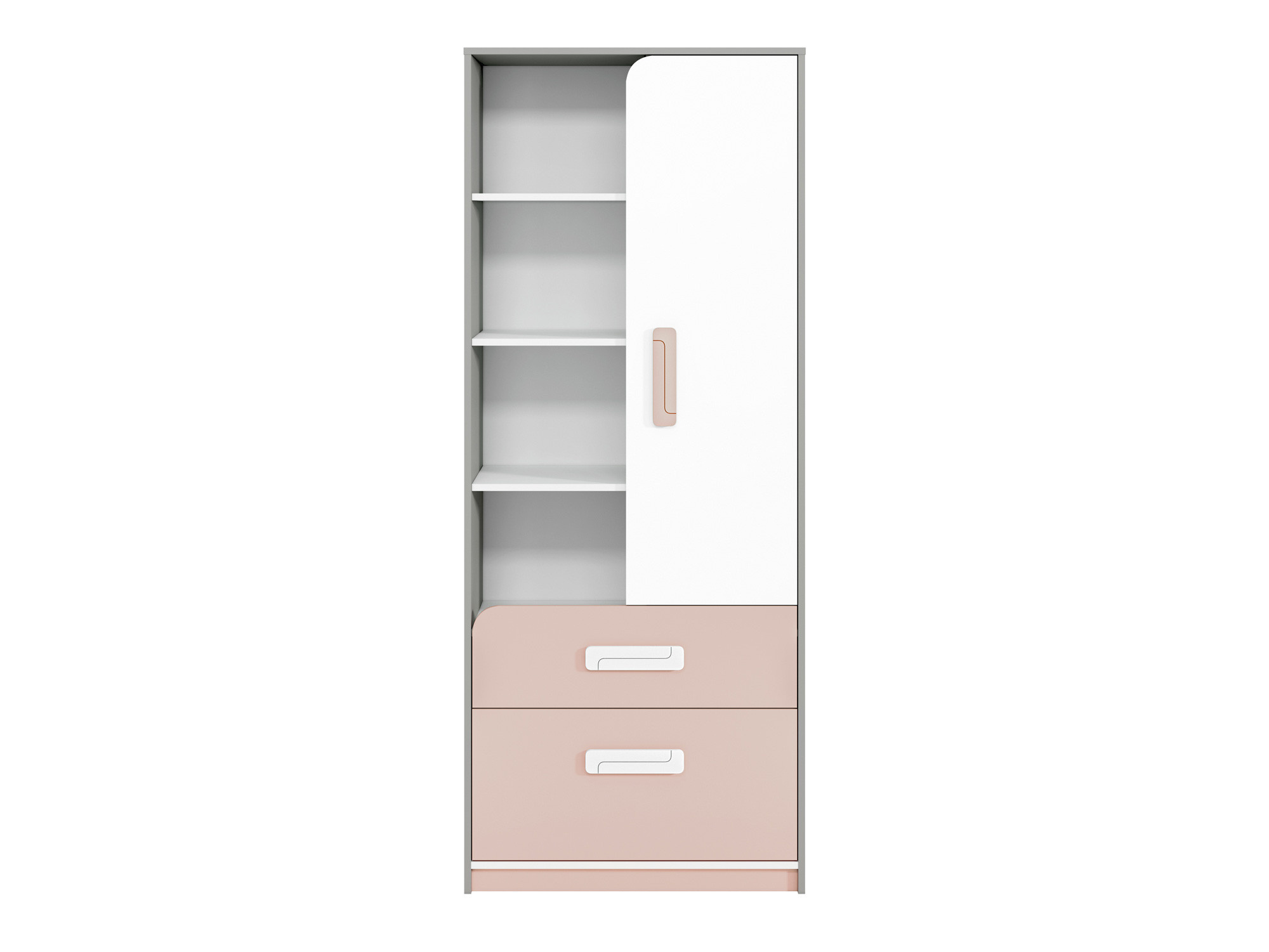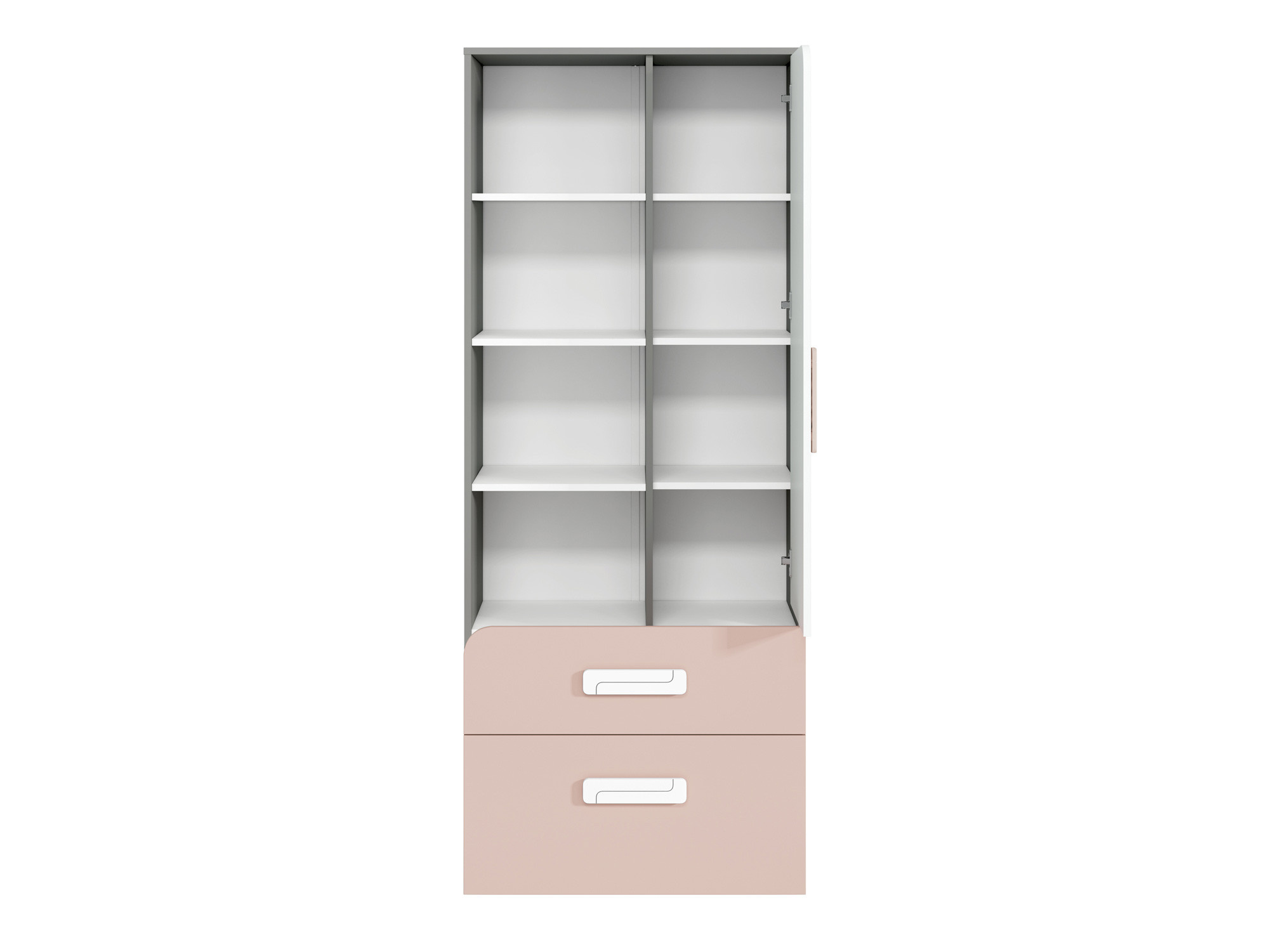 Knihovna z kolekce IQ model 03-01 v pudrově modré barvě byla navržena nejen pro nejmenší uživatele, ale také pro ty, kteří mají rádi barevné designové akcenty. Na otevřených policích můžete vystavit své oblíbené předměty nebo knihy. Uzavřené police jsou naopak ideální pro ukládání oblečení.