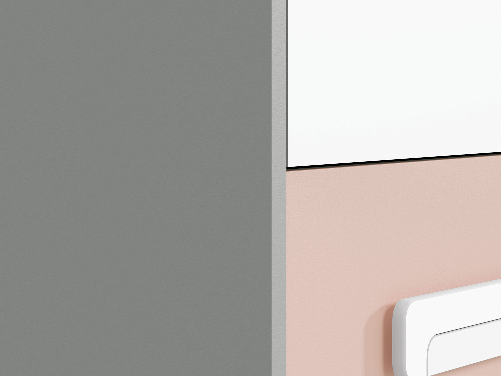 Práškově lakované spodní prádlo IQ 05-01 je modelem kolekce nábytku pro děti a mládež. Její živé barvy se dobře hodí k výzdobě a předmětům dětí. Model je vybaven otevíracími dvířky, která umožňují pohodlné uložení oblečení, ručníků nebo ložního prádla.