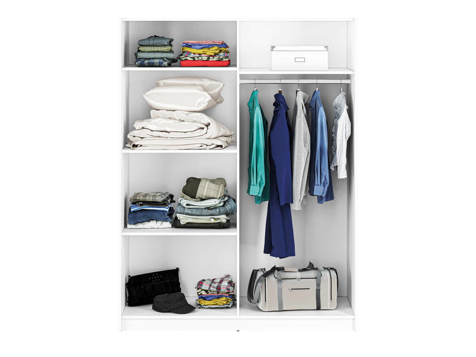 Šatní skříň KENDO 07 kombinuje moderní design s funkčností. Objemná šatní skříň překvapí ergonomickým prostorem, který pojme všechny potřebné věci a oblečení.