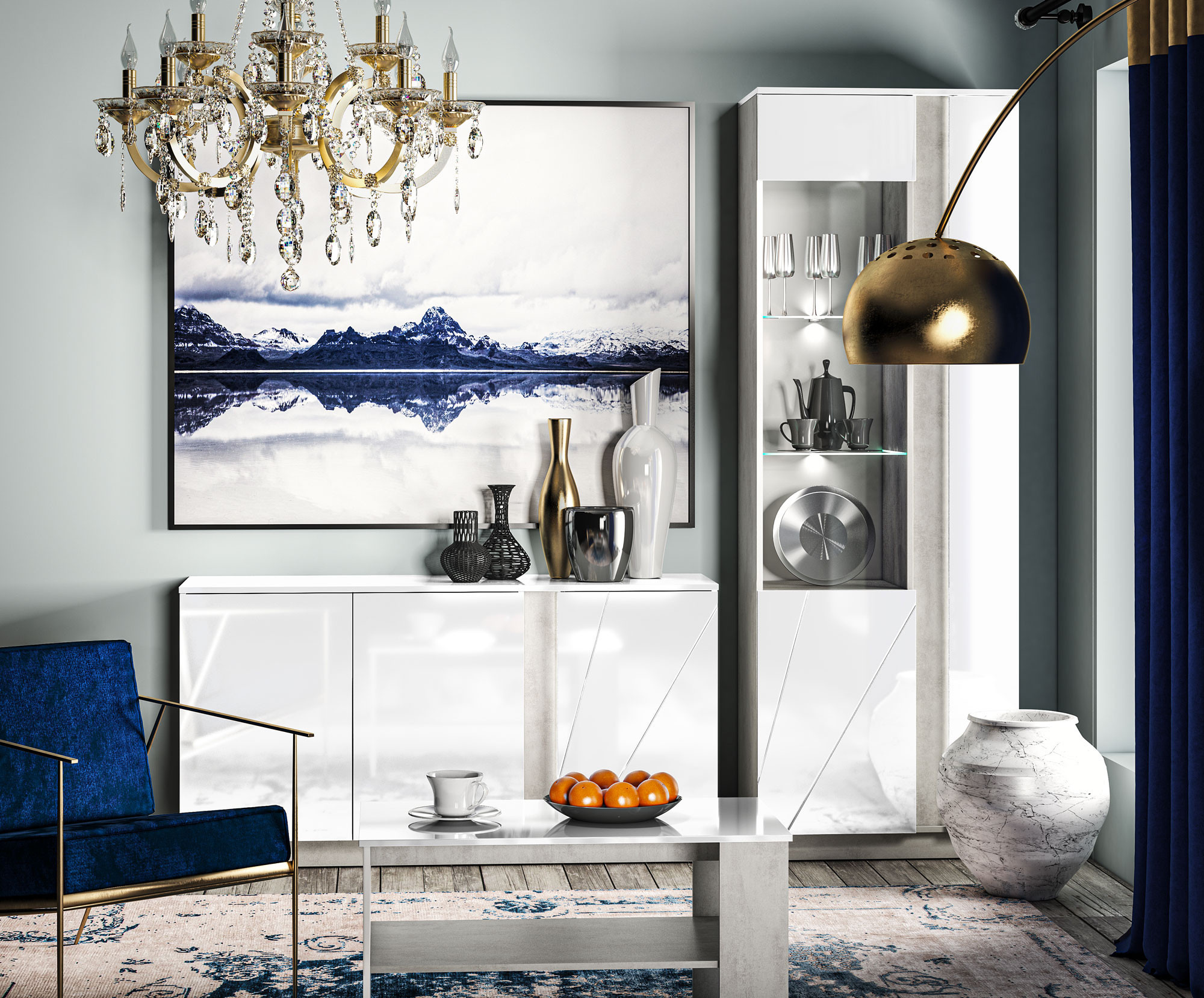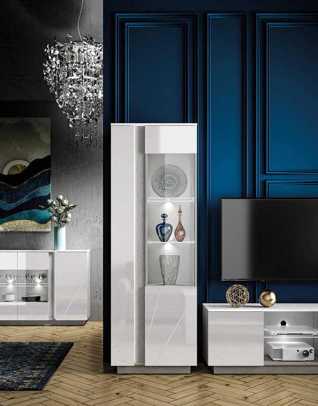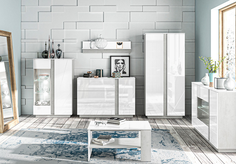 Šatní skříň LUMENS 01, Beton/Bílý lesk