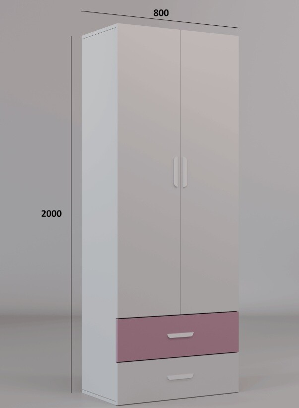 Tato 2-dveřová skříň je vybavena klasickým otvíráním, které je nejen praktické, ale také velmi snadné na manipulaci. Díky tomu se skříň hodí do jakéhokoliv prostoru, ať už je to ložnice, předsíň nebo šatna. Absence zrcadla na dveřích přidává skříni na jednoduchosti a čistotě designu, což umožňuje snadné kombinování s ostatním nábytkem. Má i dva šuplíky ve spodní části
