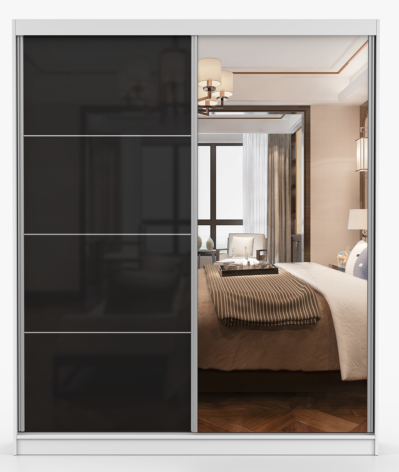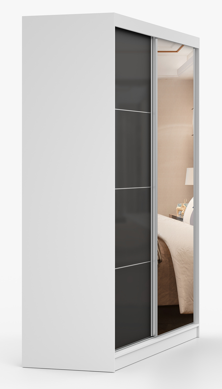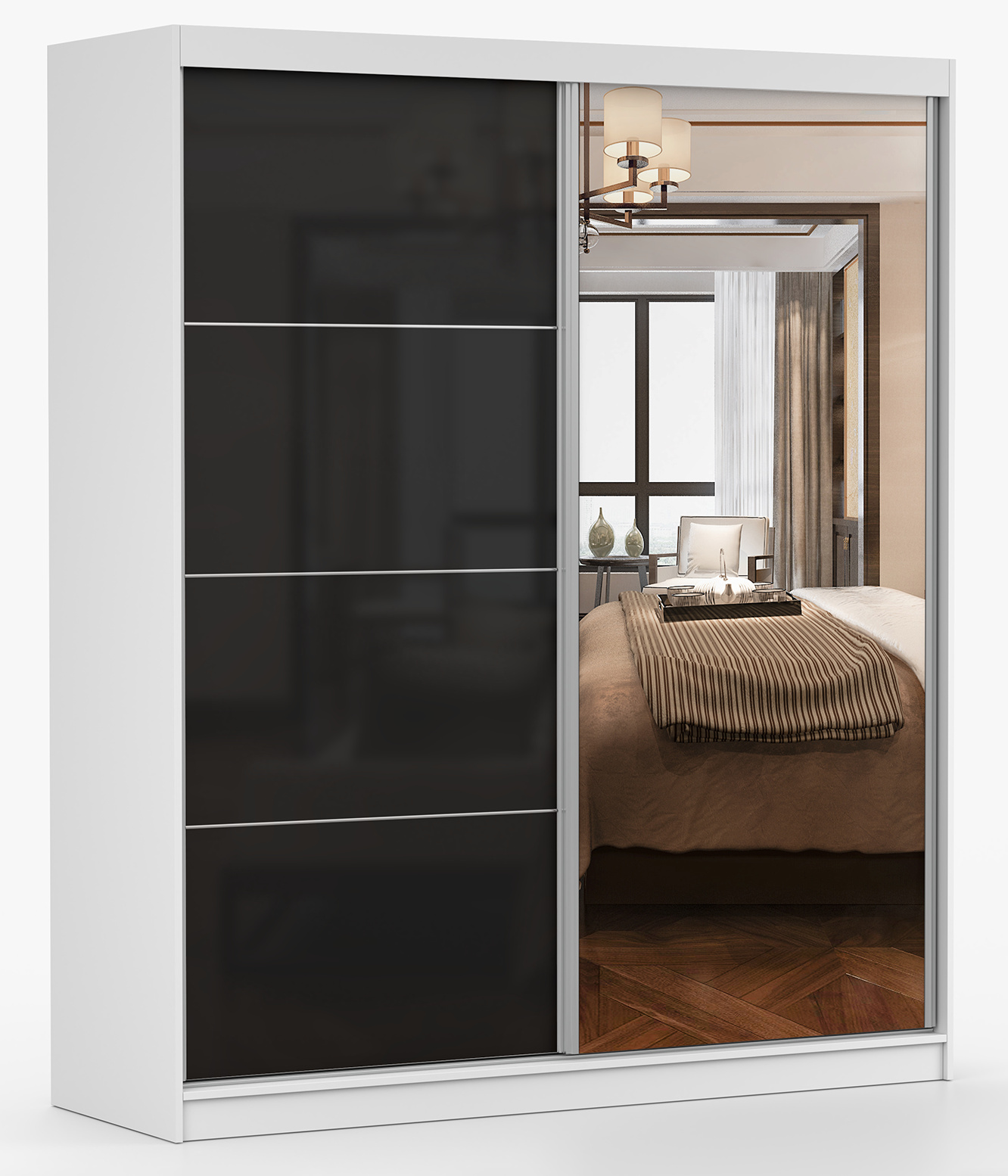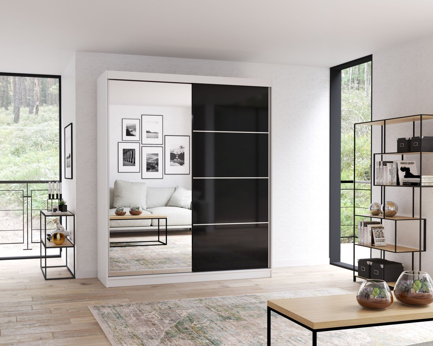 Šatní skříň MULTI 31 - 183 cm, Bílá/Černý Lesk