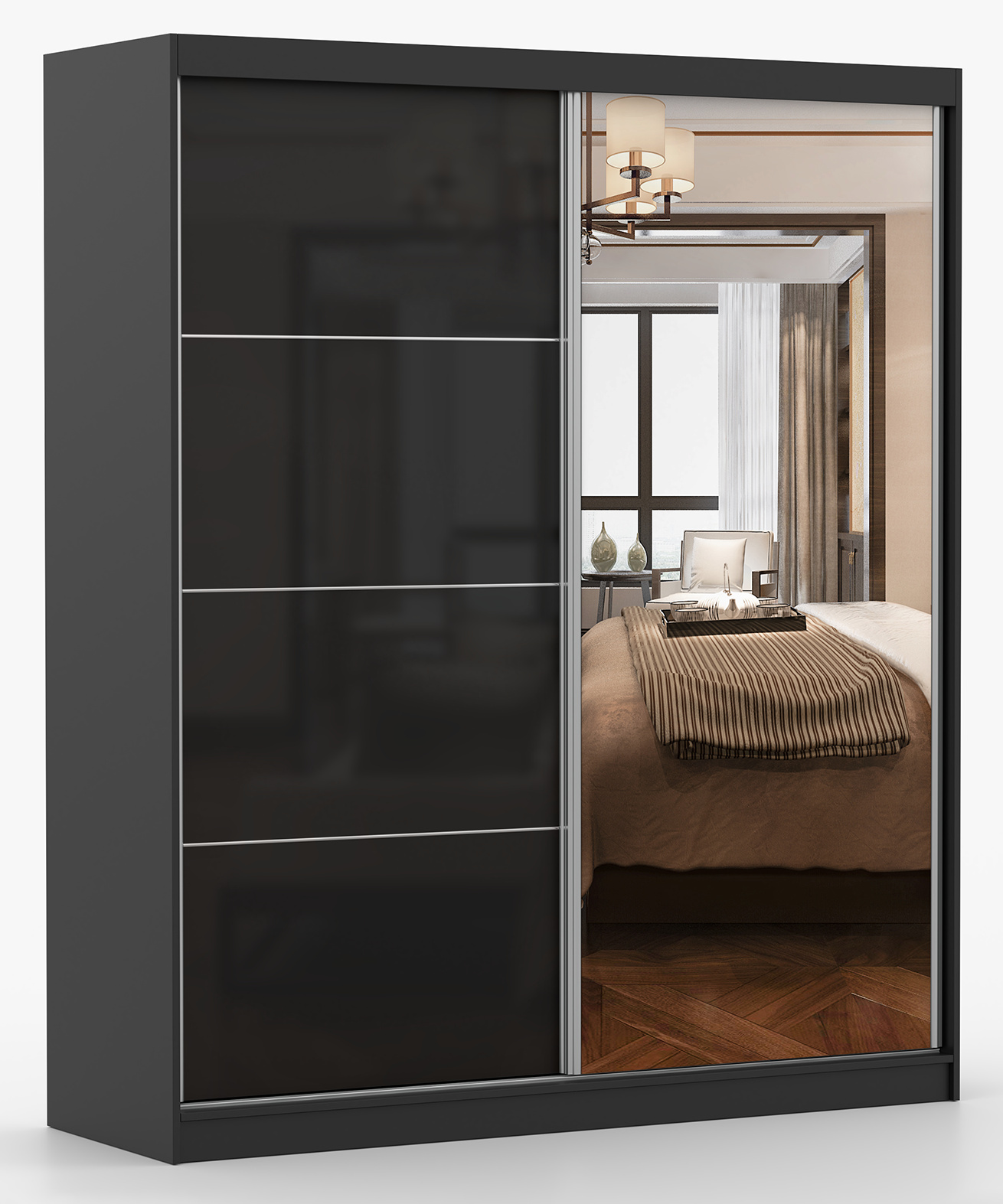 Šatní skříň MULTI 31 - 183 cm, Černá/Černý Lesk