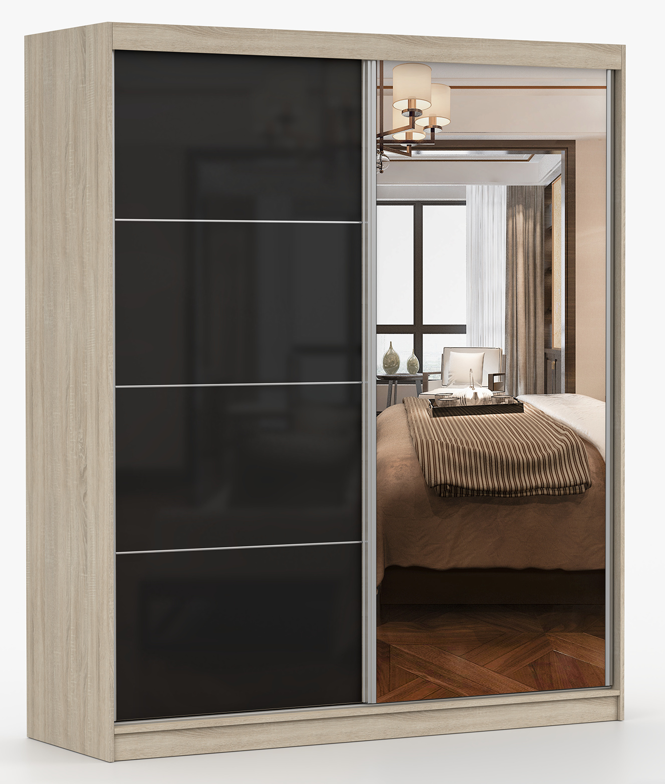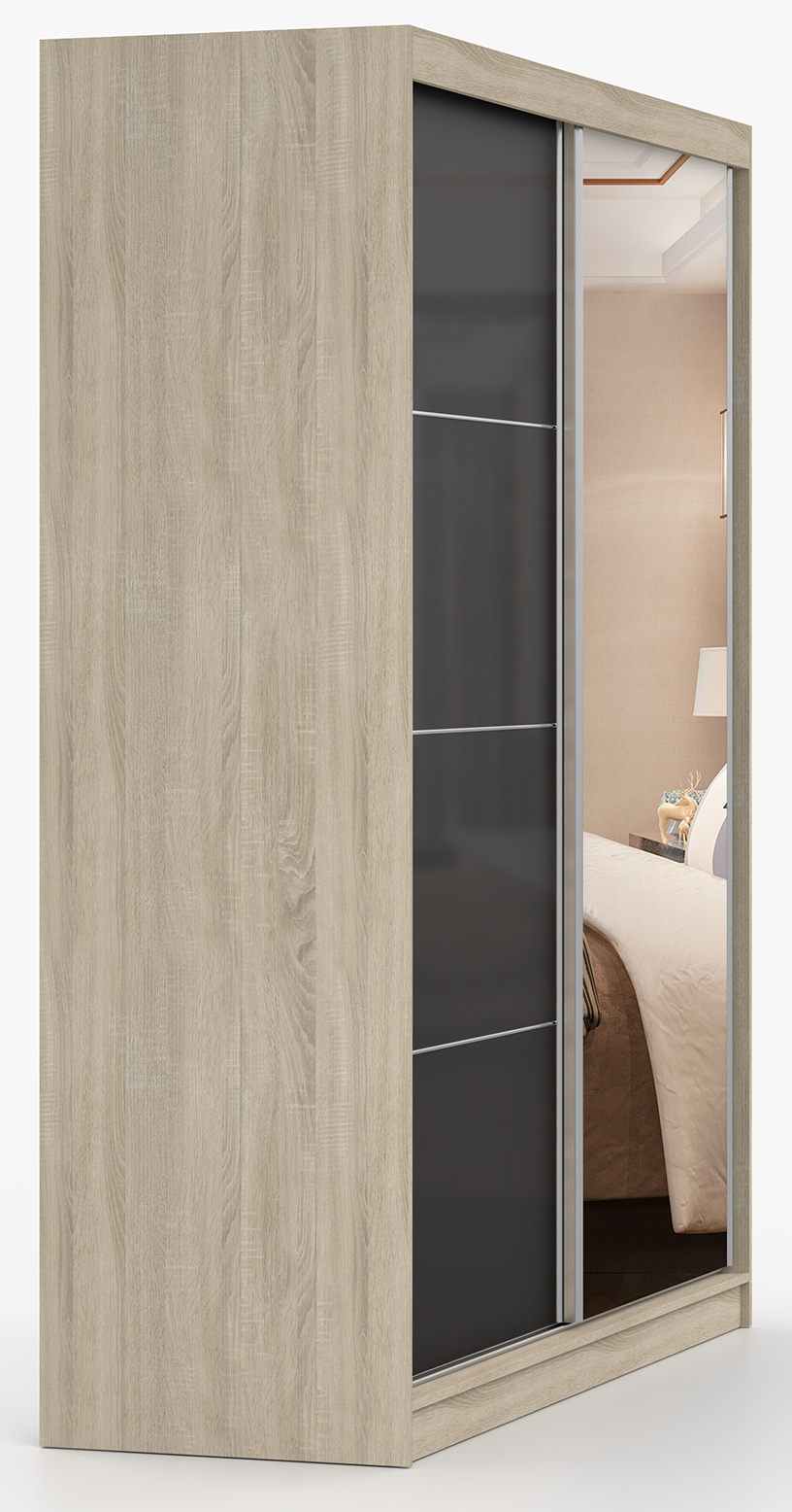 Šatní skříň MULTI 31 - 183 cm, Dub Sonoma/Černý Lesk