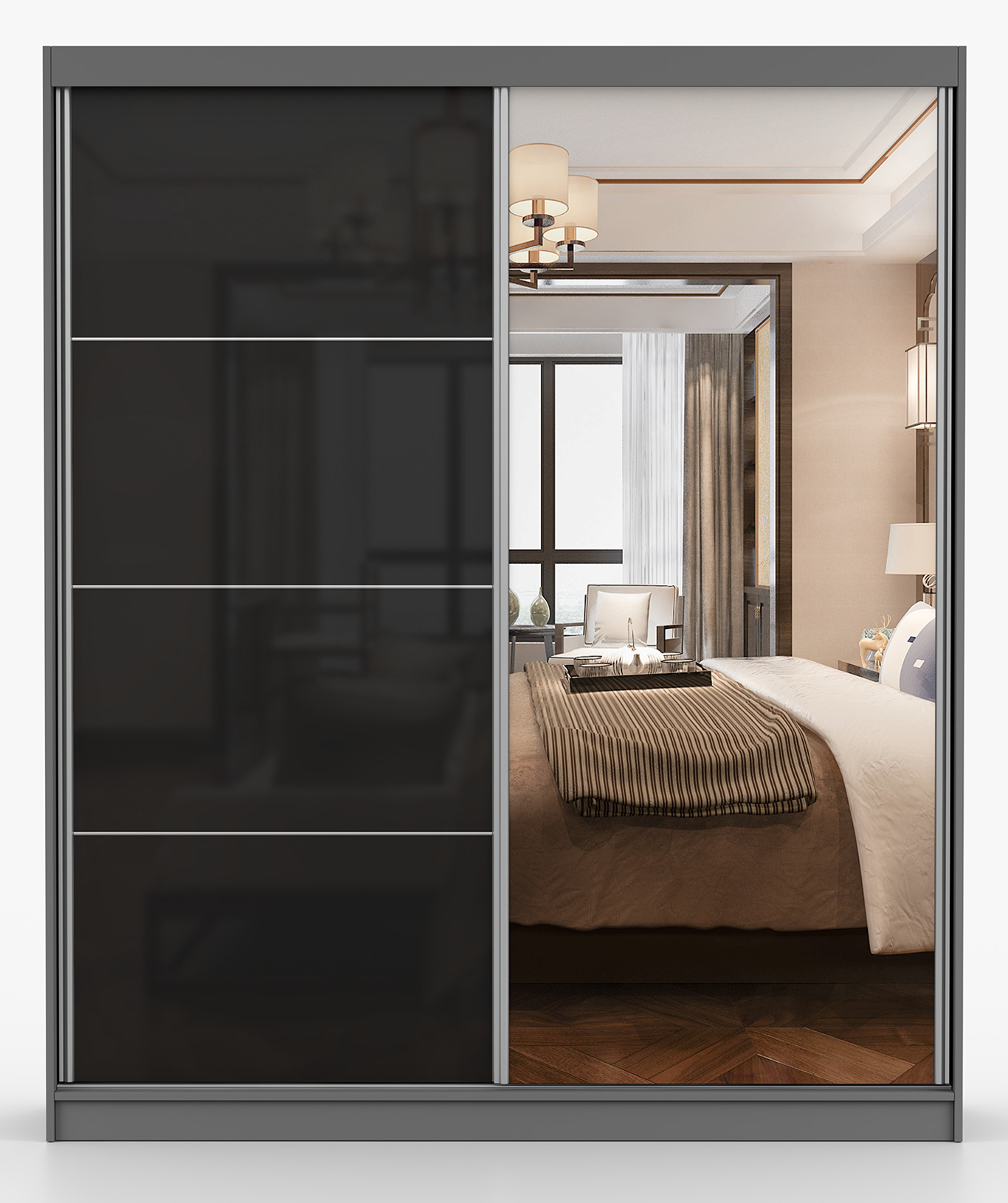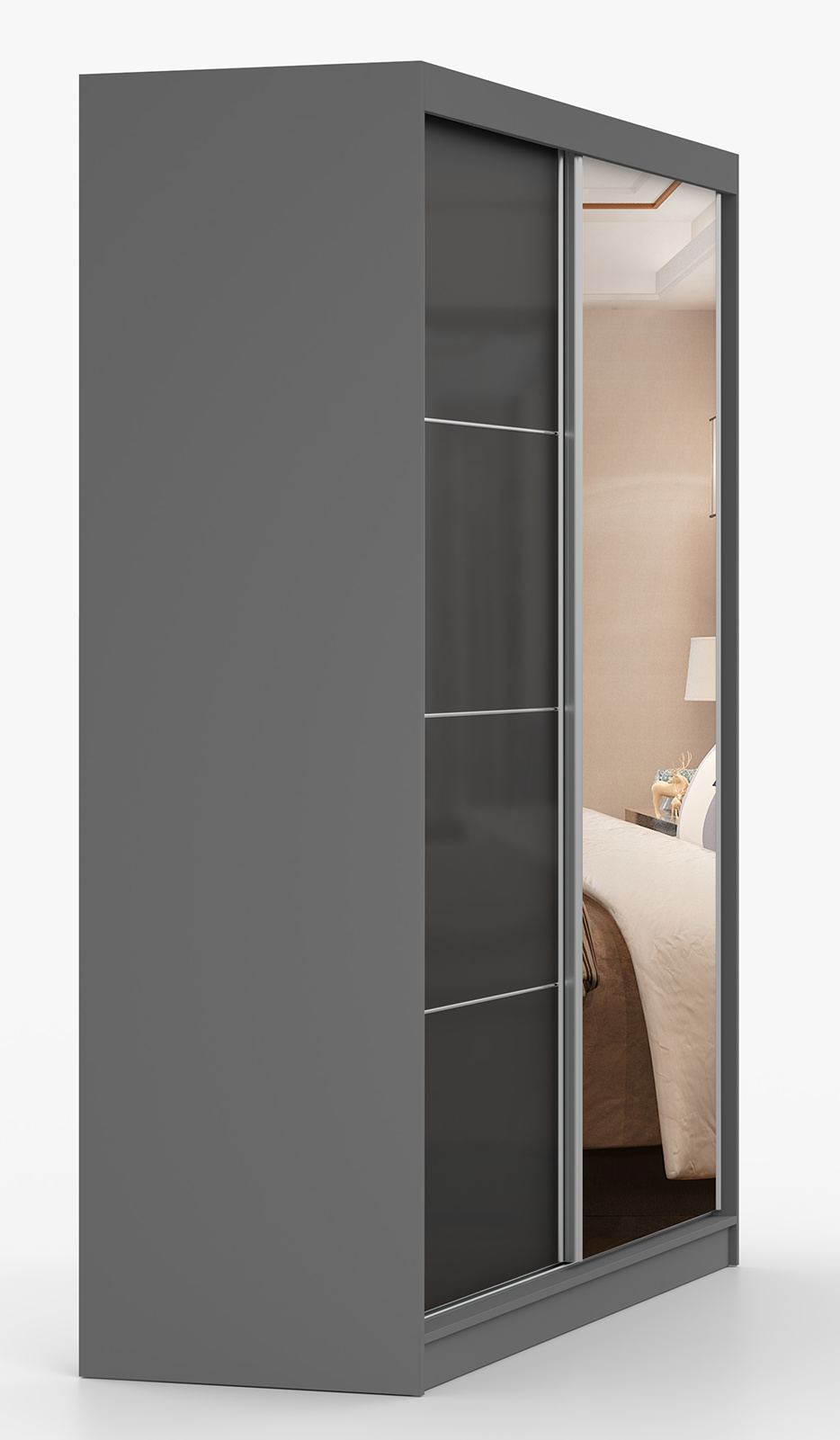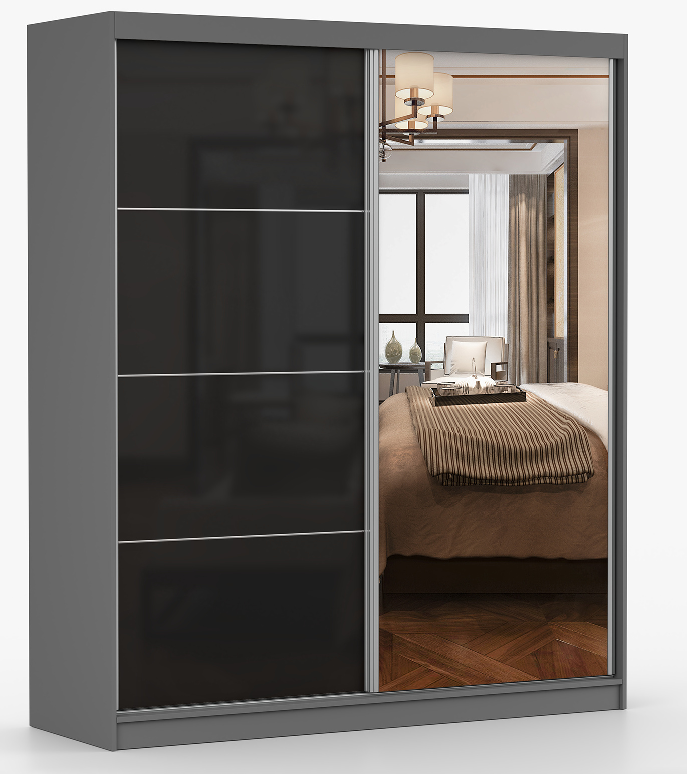 Šatní skříň MULTI 31 - 183 cm, Šedá/Černý Lesk
