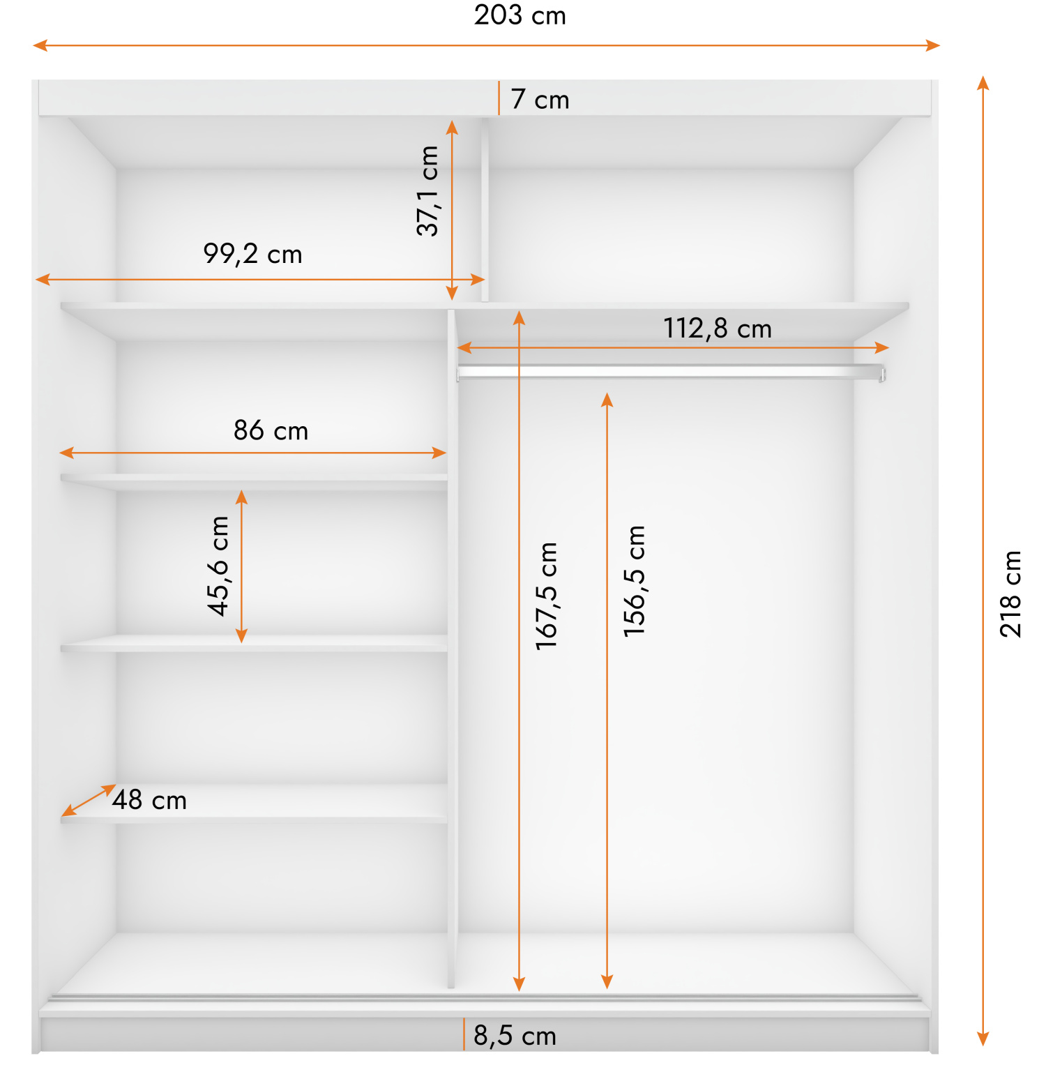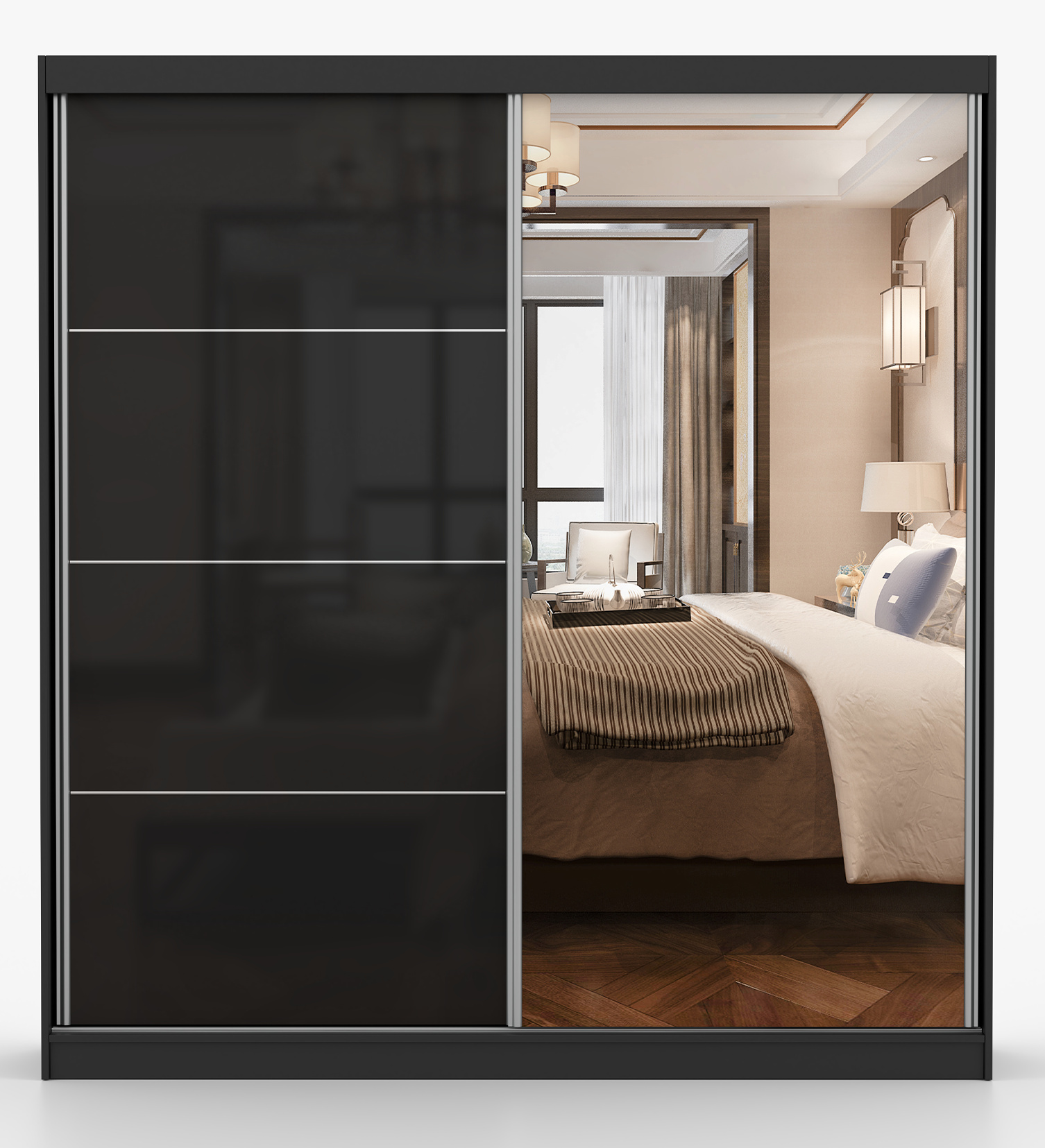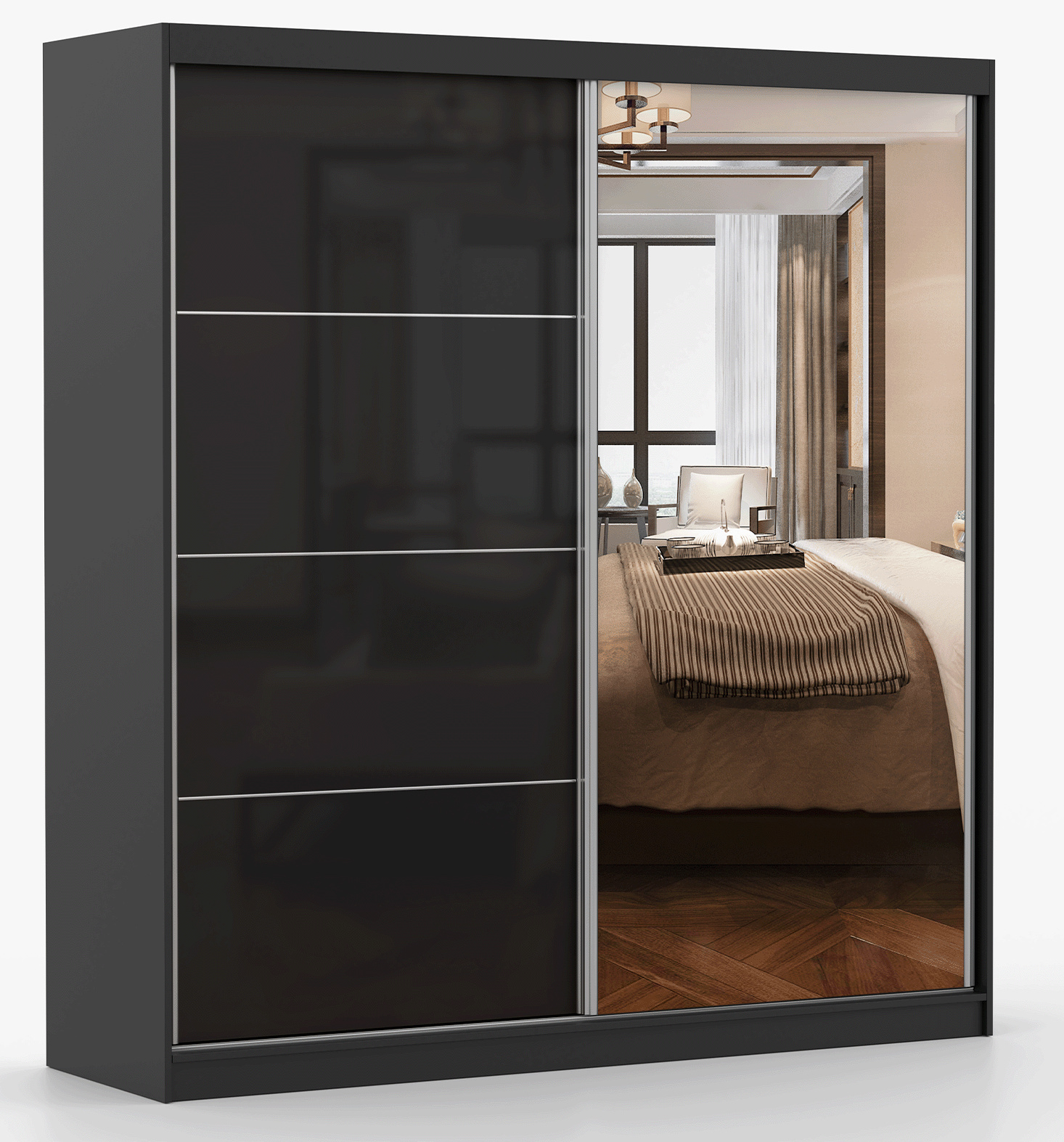 Šatní skříň MULTI 31 - 203 cm, Černá/Černý Lesk