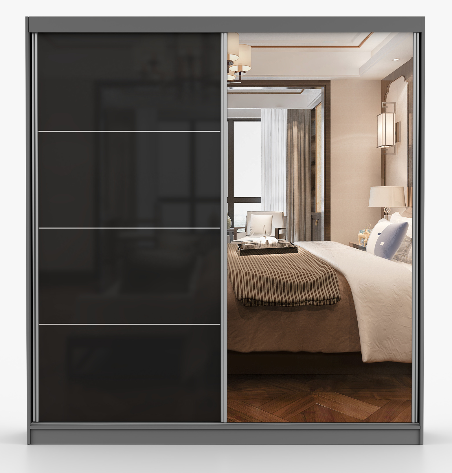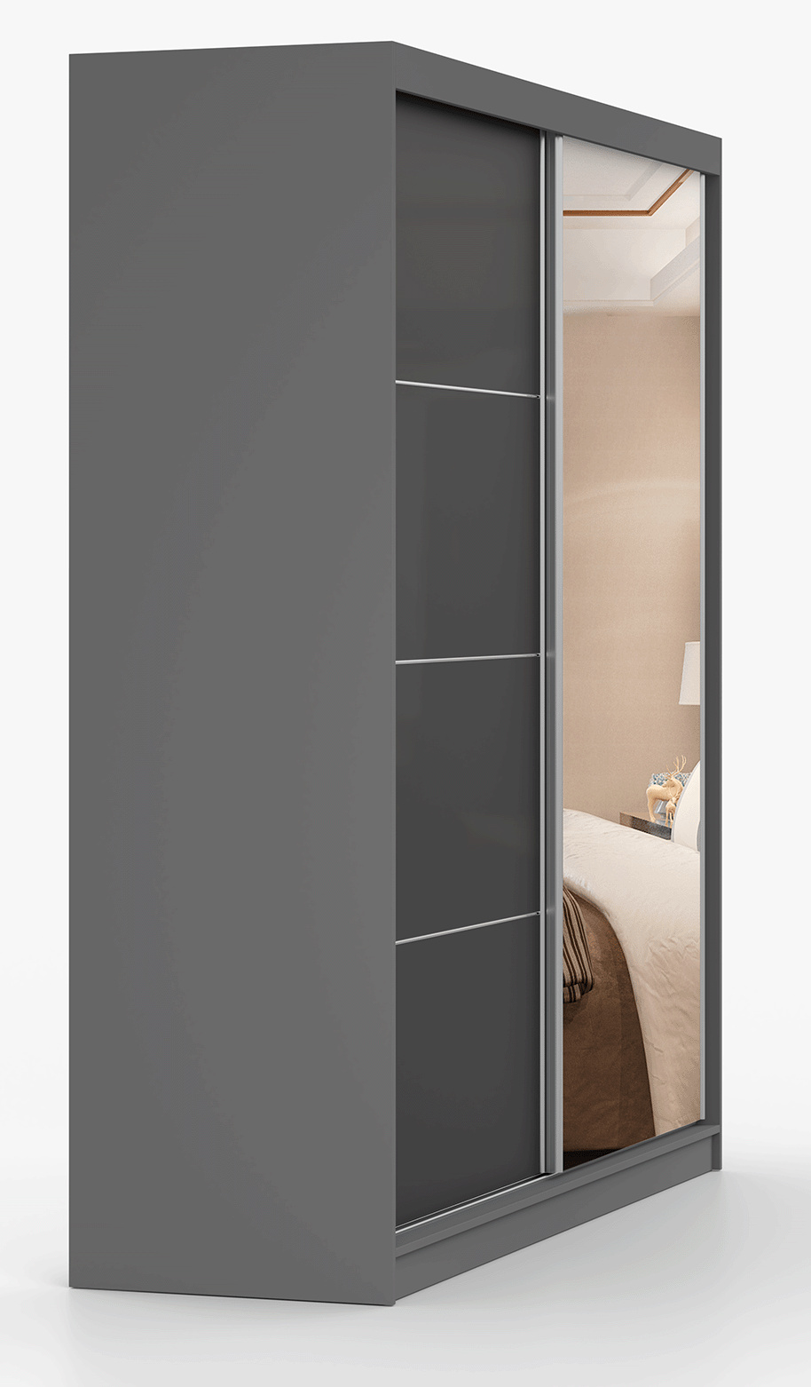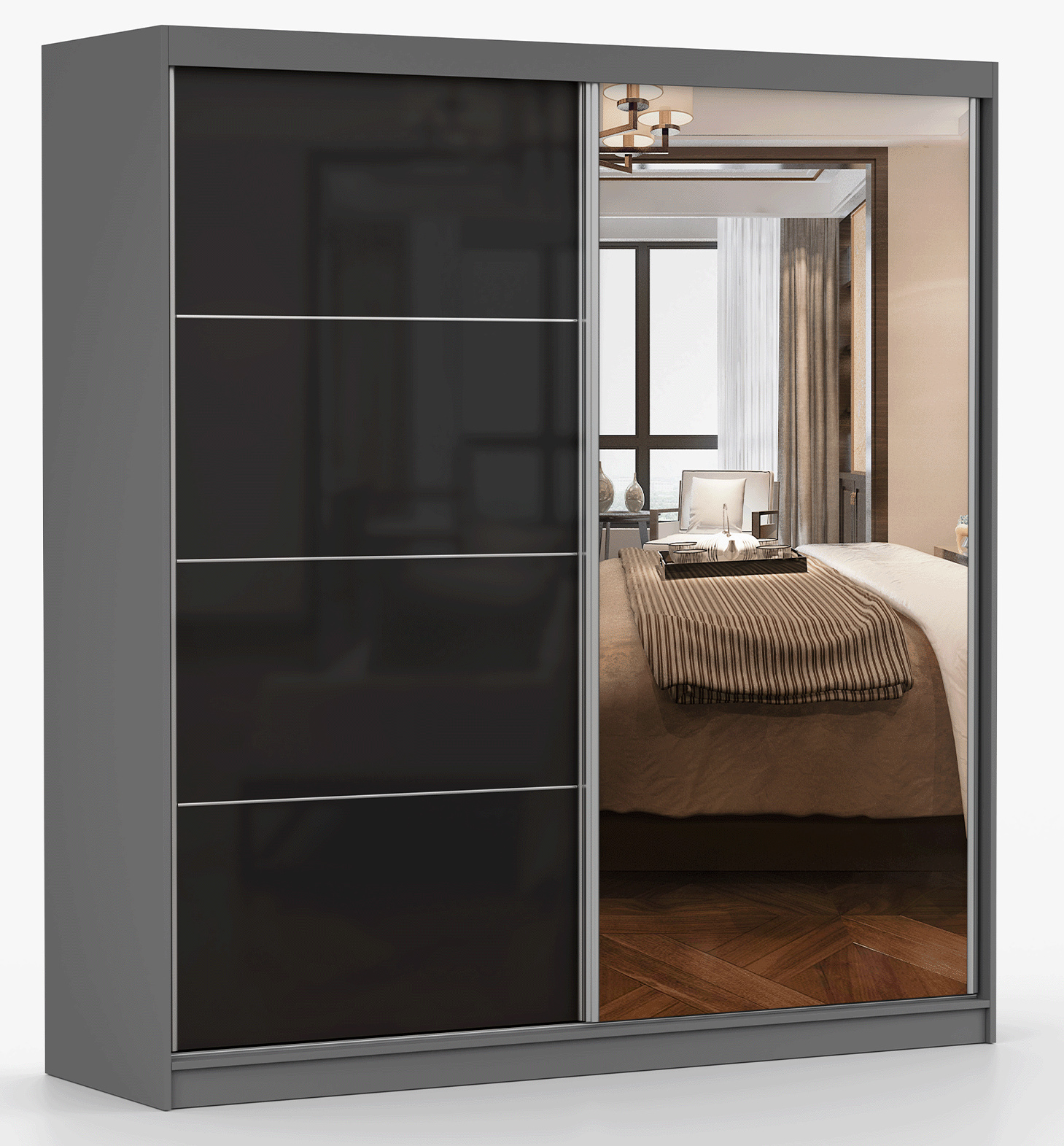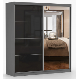 Šatní skříň MULTI 31 - 203 cm, Šedá/Černý Lesk