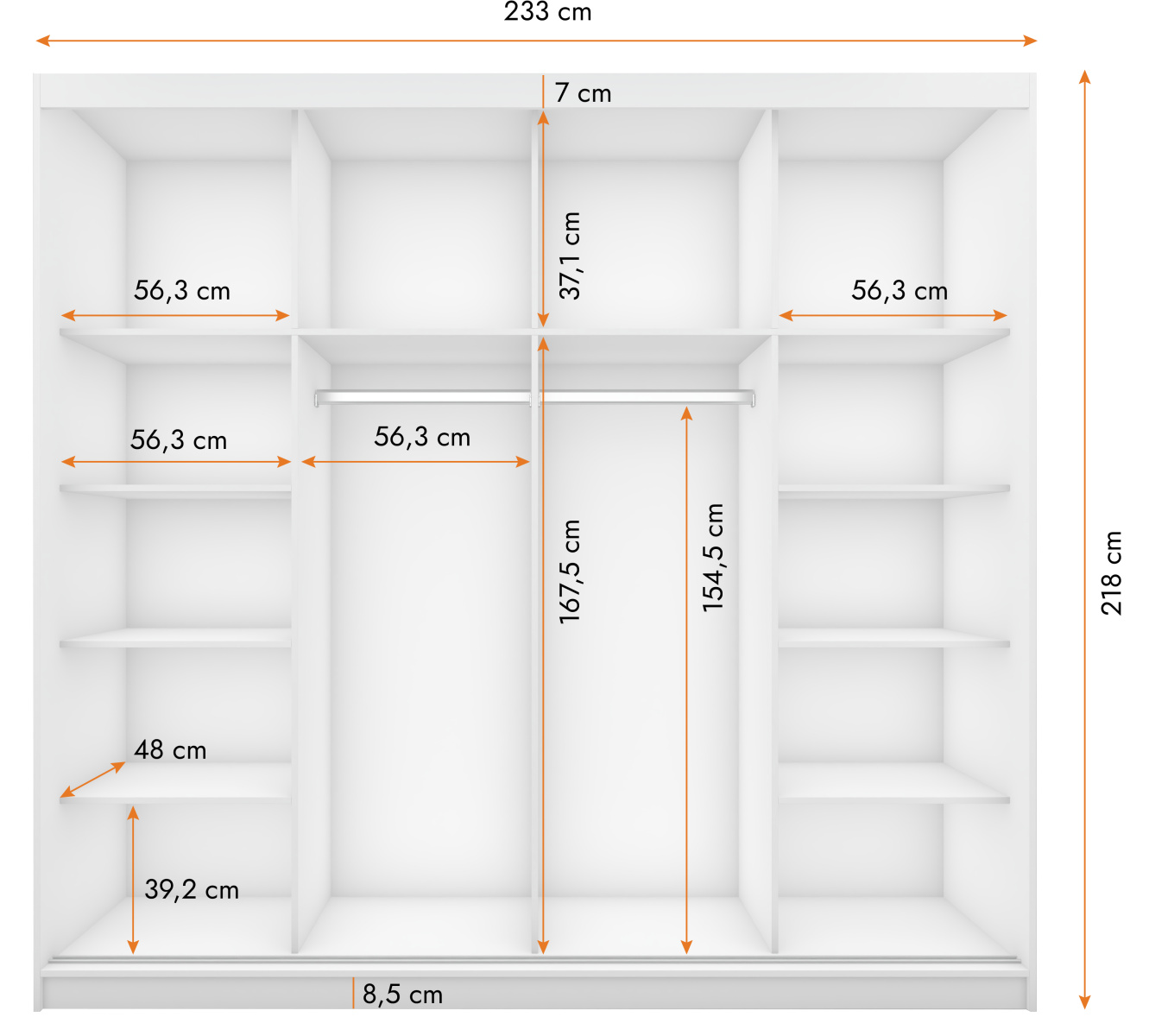 Objevte dokonalou kombinaci stylu a praktičnosti s šatní skříní MULTI 31. Tato skříň je navržena tak, aby splnila všechny vaše potřeby pro ukládání oblečení a zároveň přidala moderní nádech do vašeho interiéru. S šířkou 233 cm, výškou 218 cm a hloubkou 61 cm nabízí dostatek prostoru pro všechny vaše módní kousky.