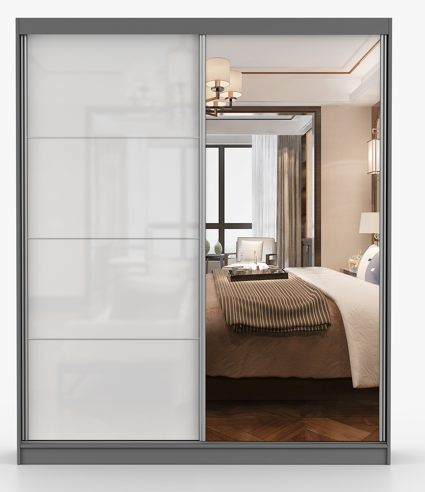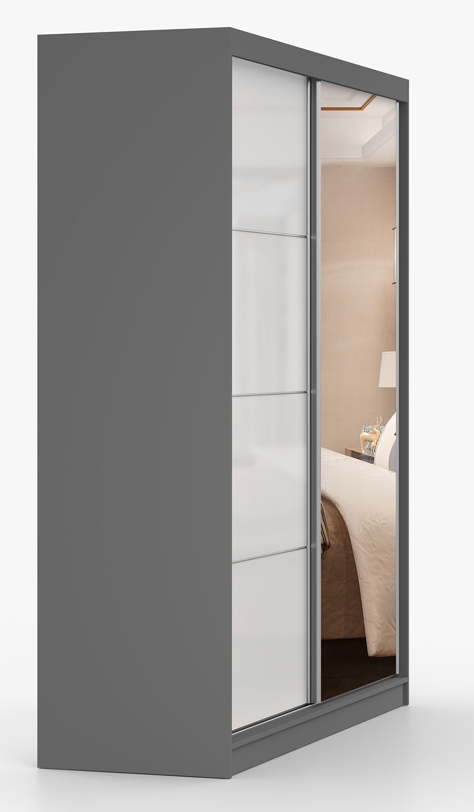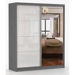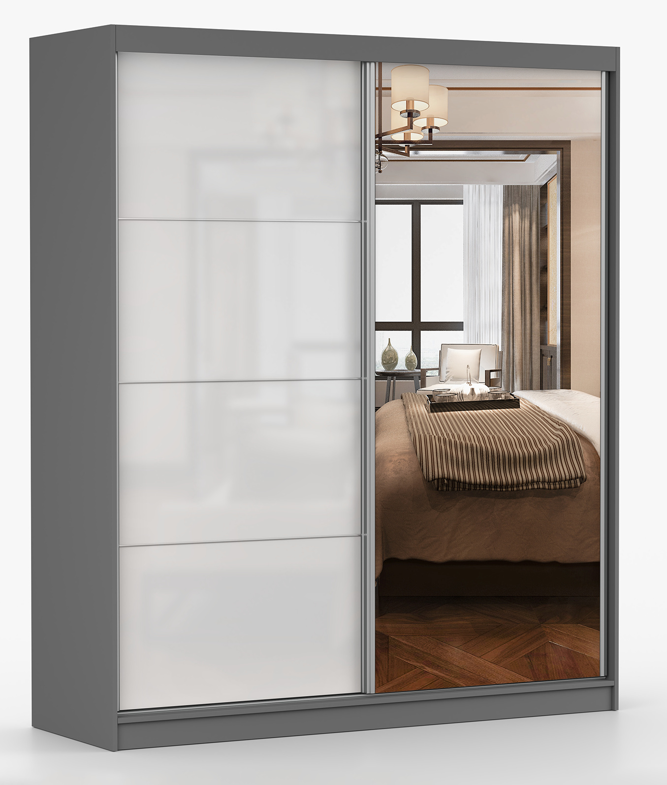 Šatní skříň MULTI 35 - 183 cm, Šedá/Bílý Lesk