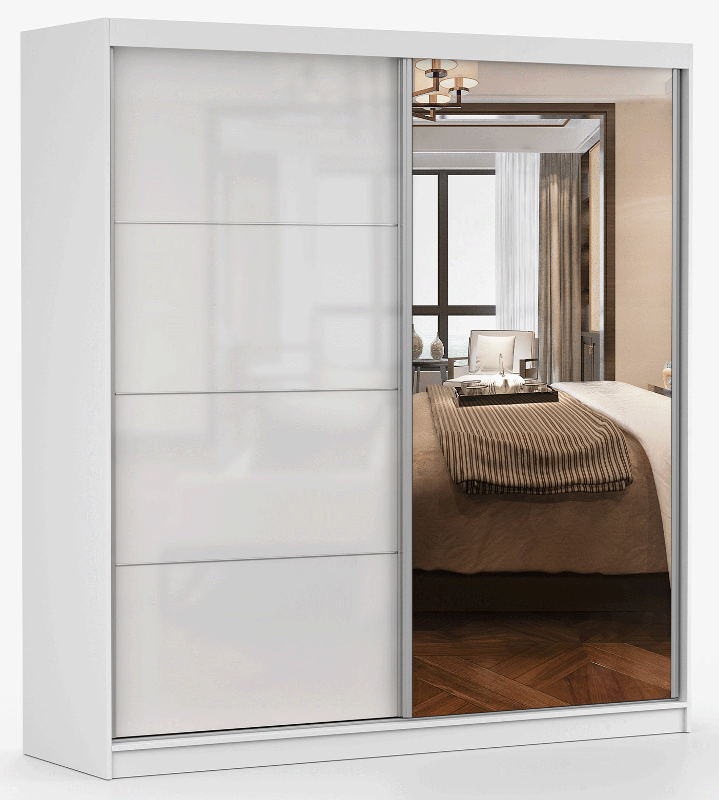 Šatní skříň MULTI 35 - 203 cm, Bílá/Bílý Lesk