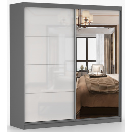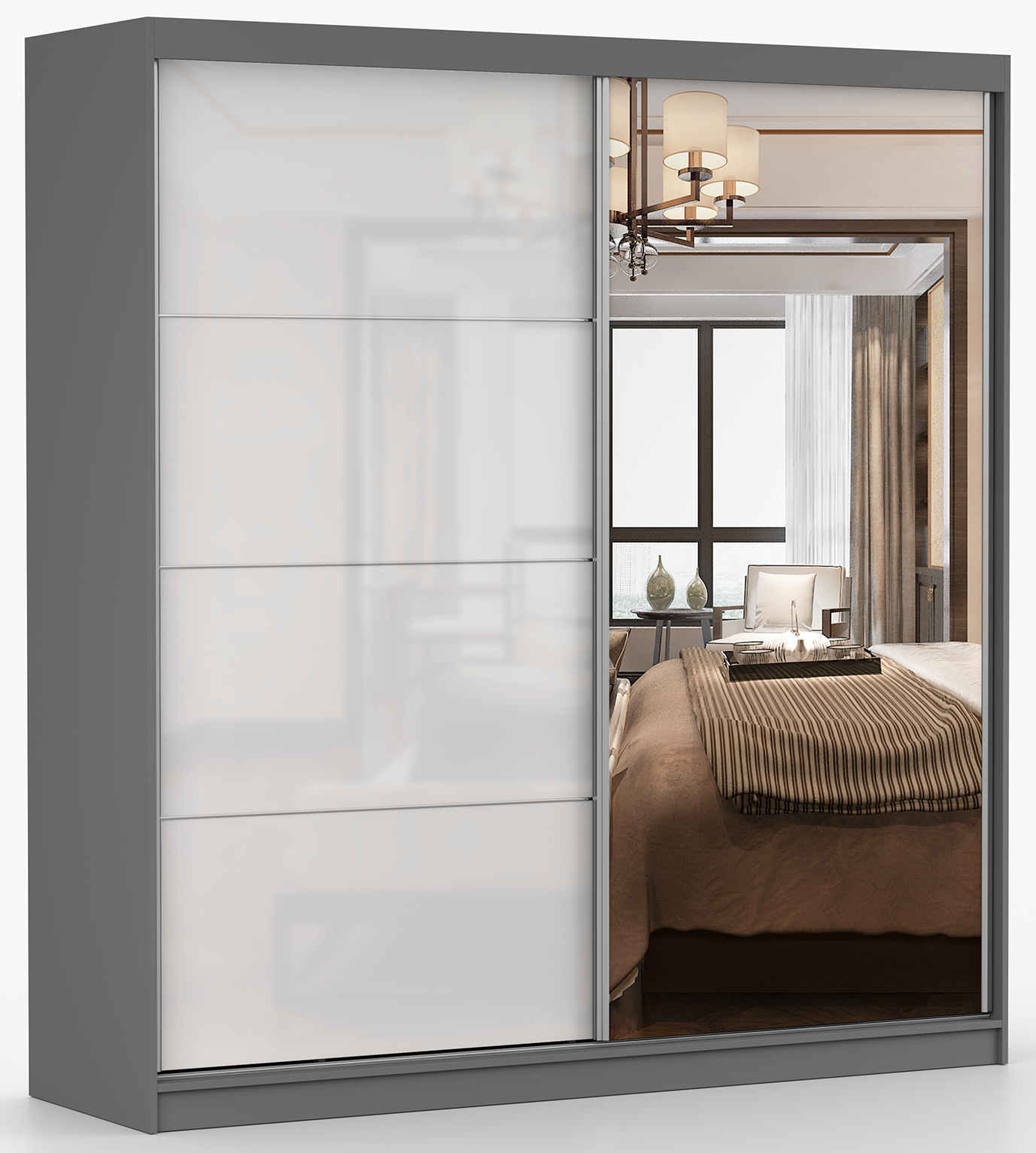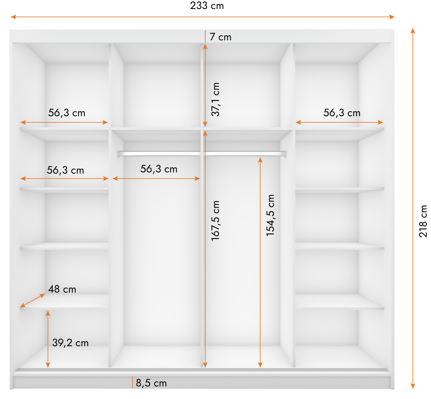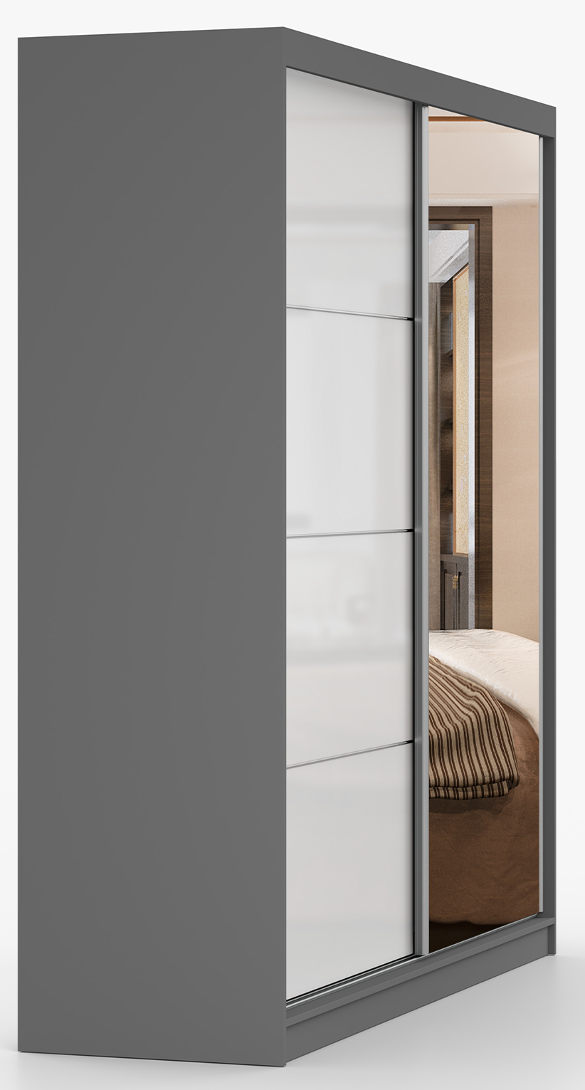 Šatní skříň MULTI 35 - 233 cm, Šedá/Bílý Lesk