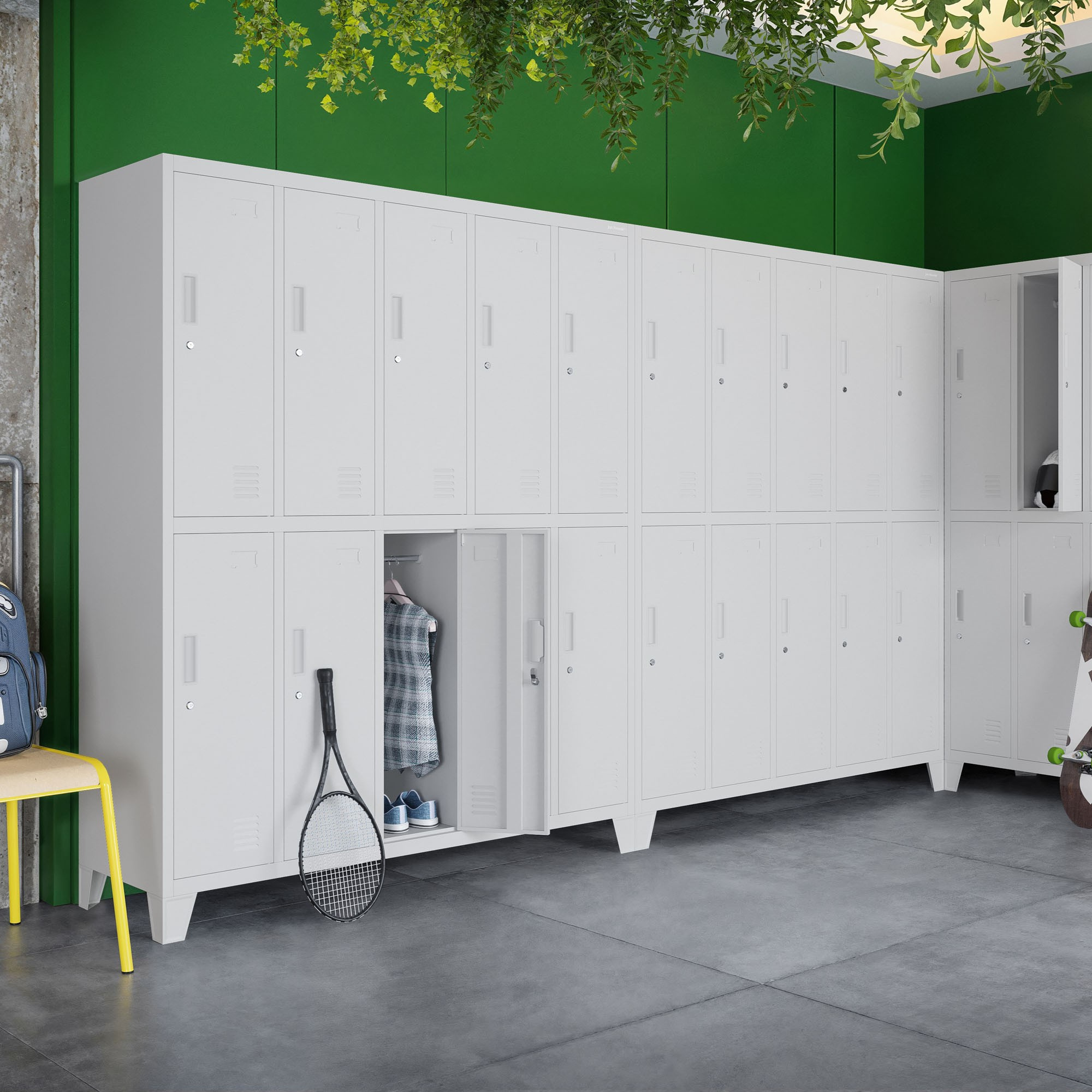 - Bezpečnost především: Každá skříňka je vybavena kvalitním zámkem, který chrání uložené věci před neoprávněným přístupem. Můžete si být jisti, že osobní věci vašich zaměstnanců nebo klientů jsou v bezpečí.