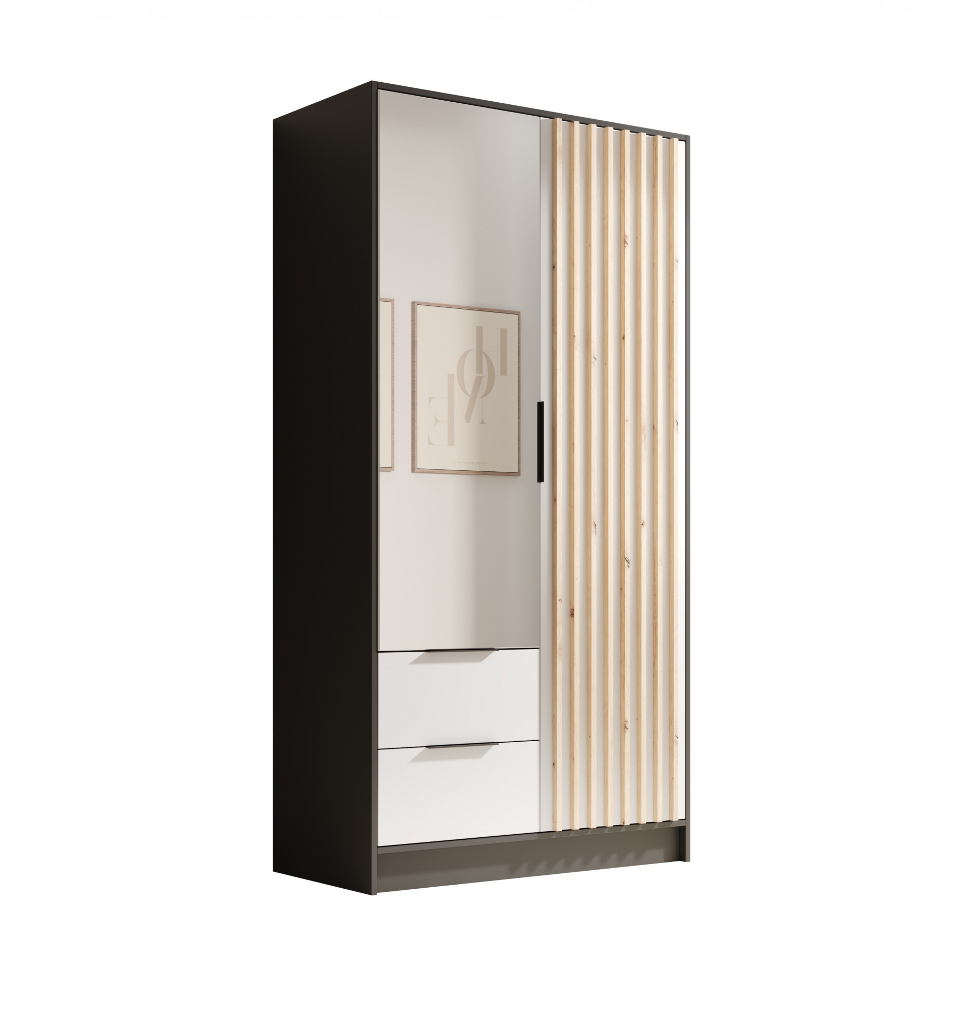 Šatní skříň Neri 100 s zrcadly Černá+Bílá