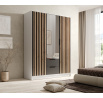 Šatní skříň Neri – elegantní a funkční skříň, která se dokonale hodí do moderních i klasických interiérů. Díky široké škále barev si každý najde verzi, která dokonale ladí s jeho stylem. Skříň Neri se vyznačuje dekorativními lamelami na čelních stranách a velkým zrcadlem, které opticky zvětší prostor a dodá mu lehkost.Skříň je k dispozici ve třech praktických velikostech:- 100 cm – kompaktní, ideální pro menší prostory,- 150 cm – vynikající kompromis mezi prostorem a velikostí,- 200 cm – prostorná varianta, ideální pro uložení většího šatníku.Každá z verzí byla navržena s ohledem na pohodlí uživatele a estetiku, která obohatí každou ložnici nebo šatnu.
