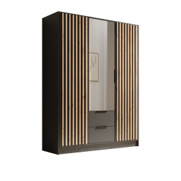 Šatní skříň Neri 150 s dveřmi a zrcadly Černá+Černá