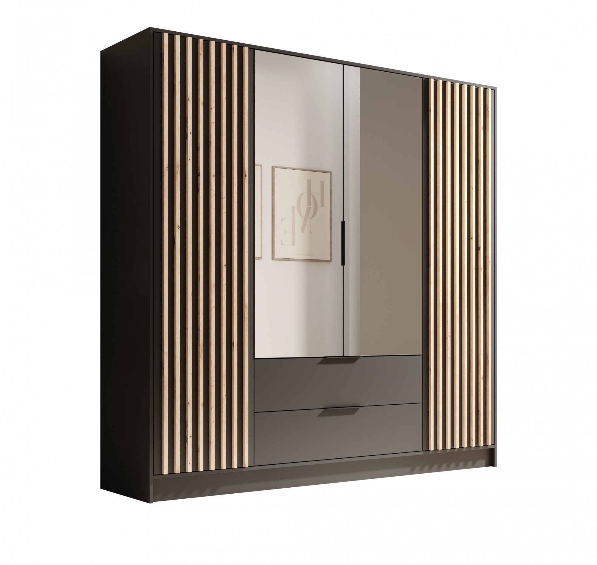 Šatní skříň Neri 200 s zrcadly Černá+Černá