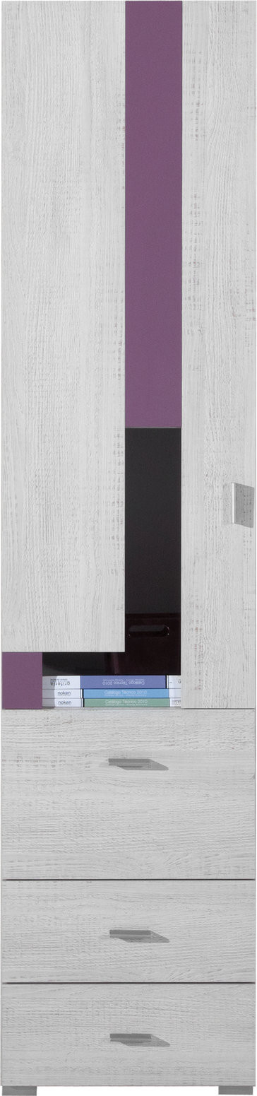 Šatní skříň NEXT - NX5, sosna bělená + fialka