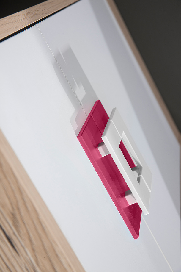 Šatní skříň NICO 01, Světlý Dub/Bílá/Růžová