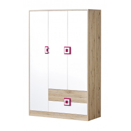 Šatní skříň NICO 03, Světlý Dub/Bílá/Růžová