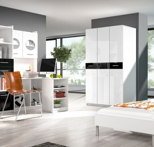Skříň je dostupná v moderní kombinaci barev, která se snadno sladí s jakýmkoli interiérem a dodá vašemu prostoru svěží a čistý vzhled.