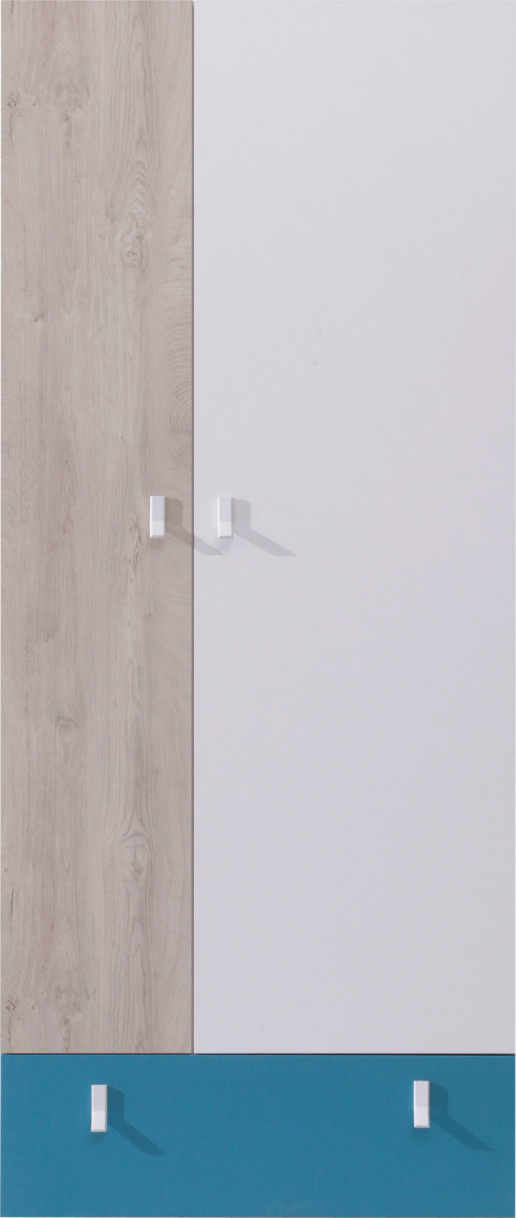 Šatní skříň PLANET- PL3, bílý lux+dub+modrá