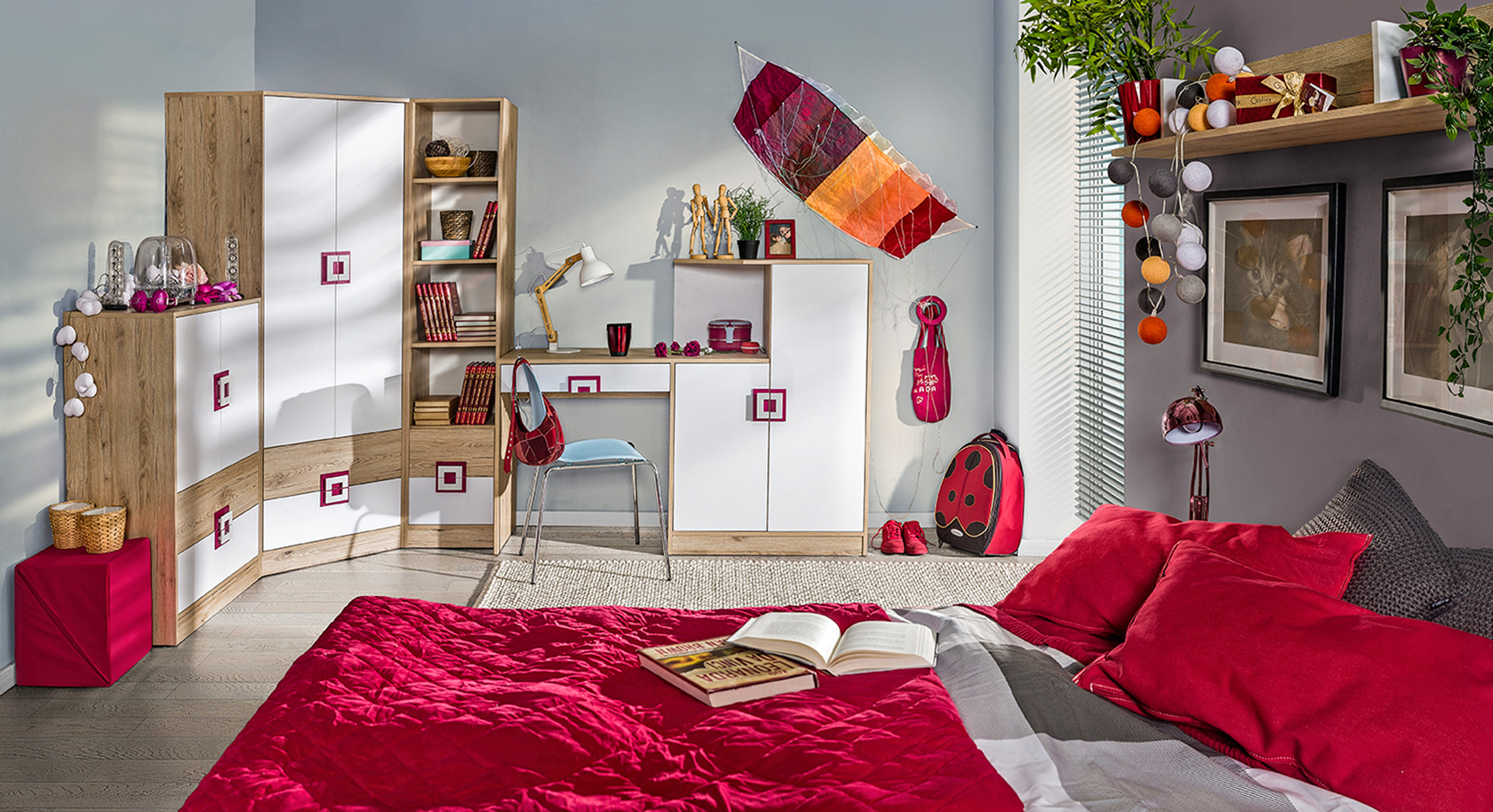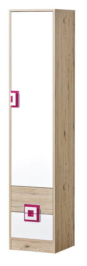 Šatní skříň policová NICO 05, Světlý Dub/Bílá/Růžová