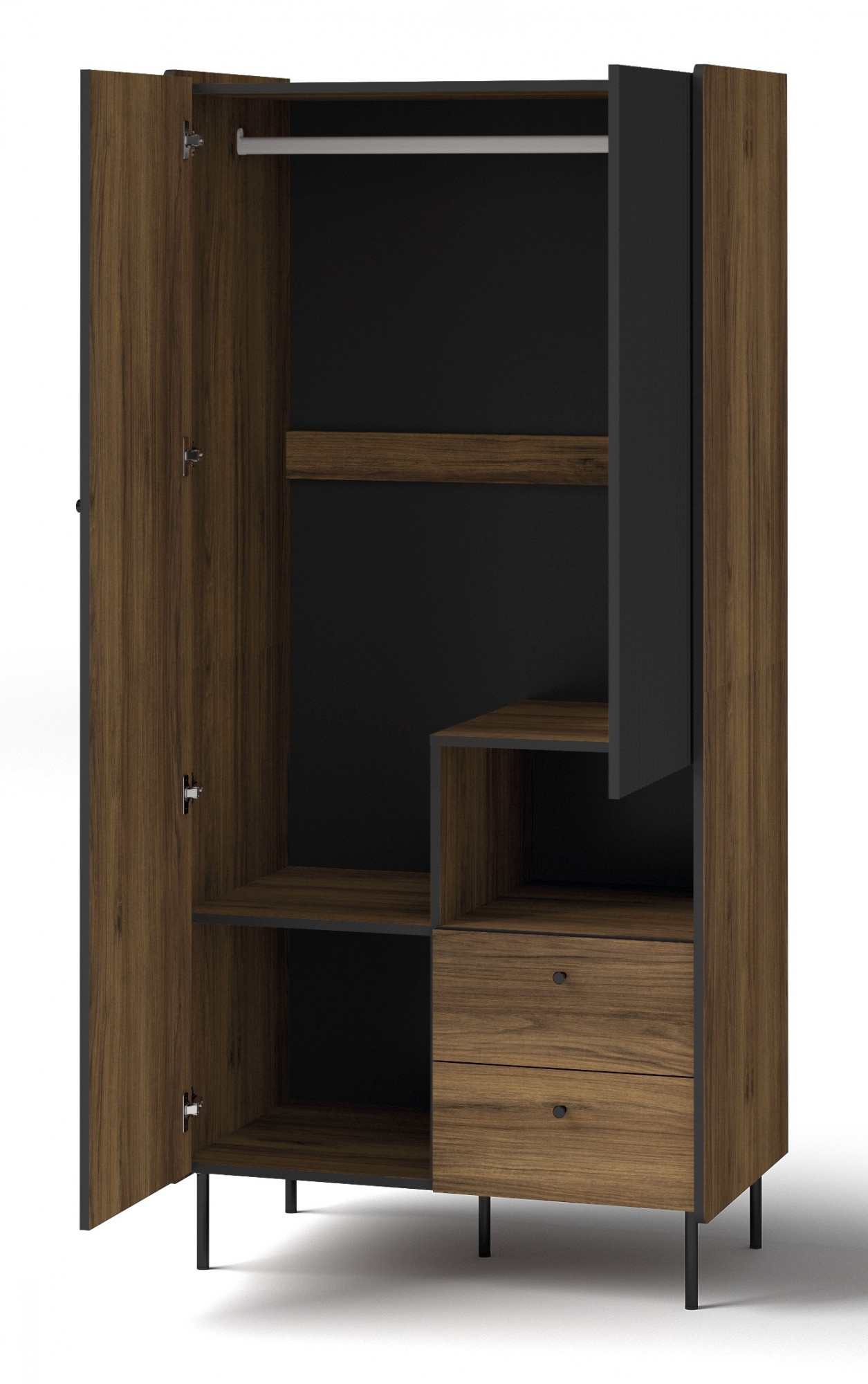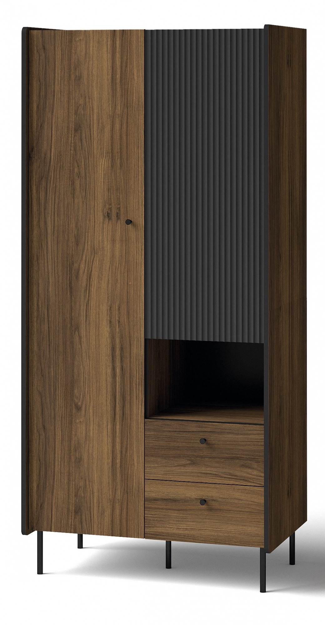 Šatní skříň PRESTIGO - P1, Ořech Warmia/San Sebastian/Černý mat