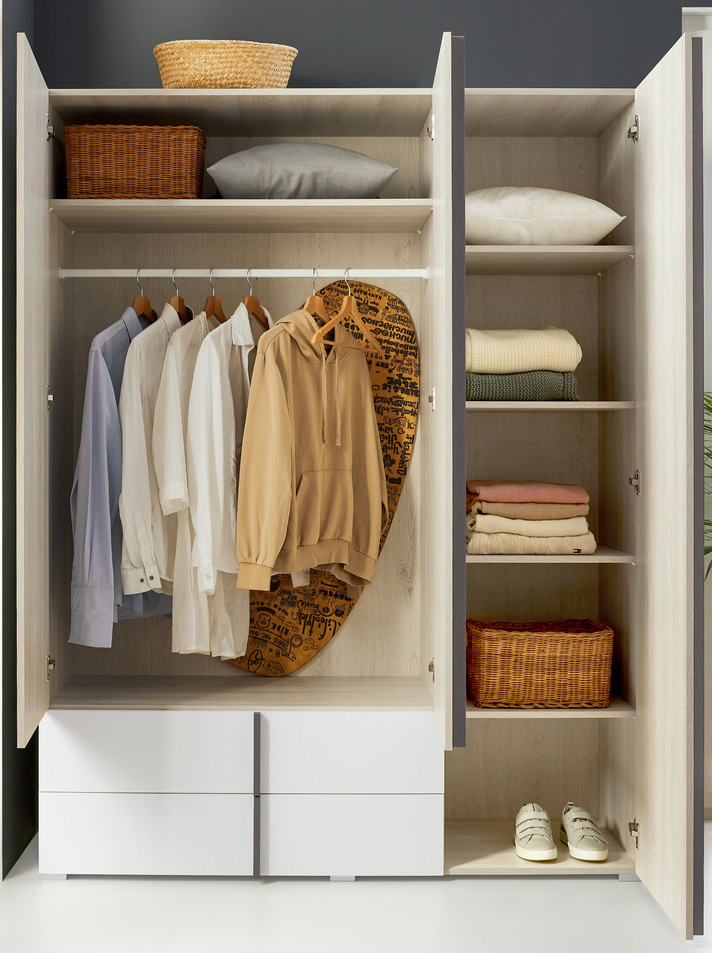 Šatní skříň REMO RM1, Dub Wilton bílý/Bílá Lux/Antracit