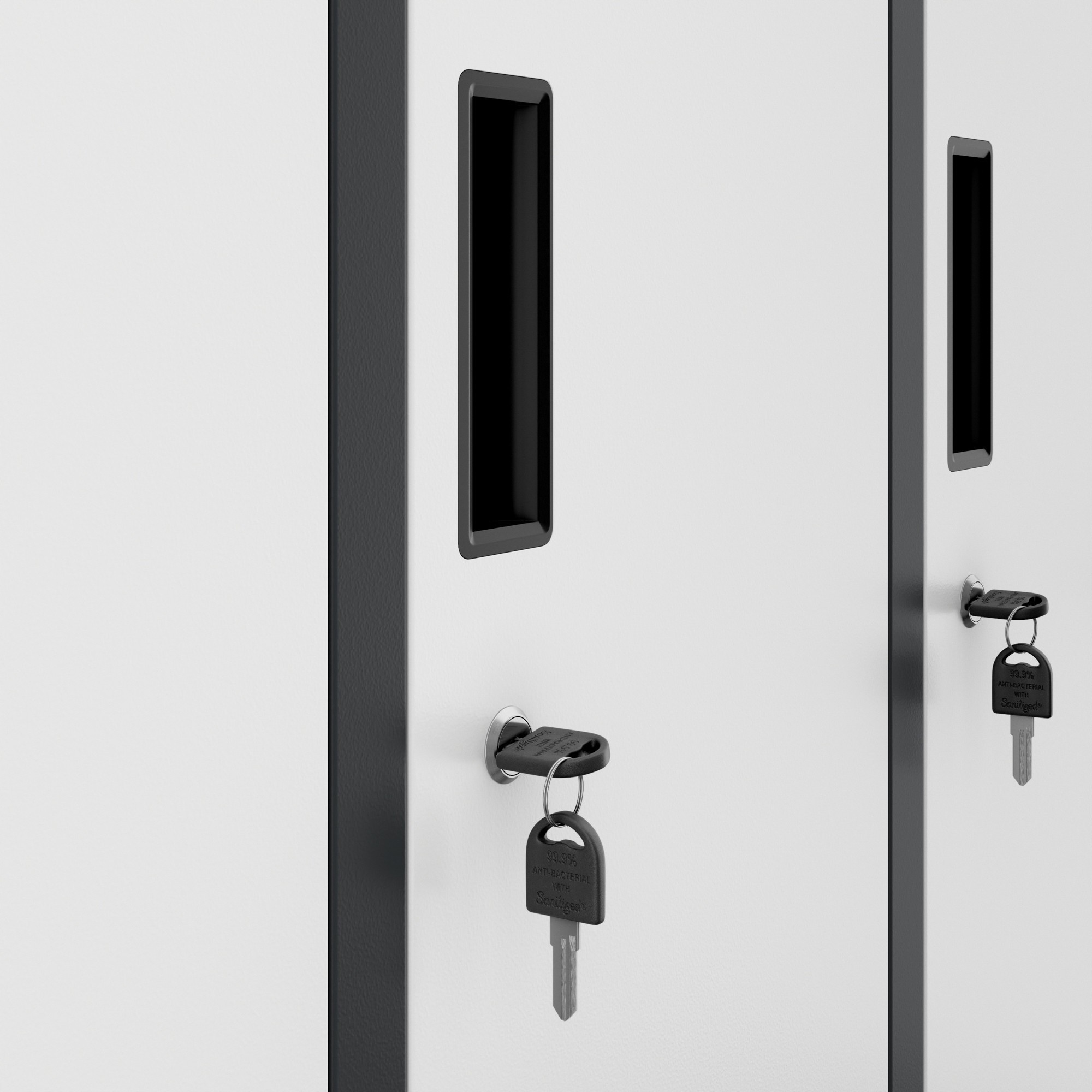 Každá přihrádka je vybavena kvalitním zámkem, který zajišťuje bezpečné uložení vašich věcí a chrání je před neoprávněným přístupem. Skříň BARTEK splňuje požadavky na ochranu osobních údajů dle GDPR 2018, takže si můžete být jisti, že vaše dokumenty a citlivé informace jsou v bezpečí.