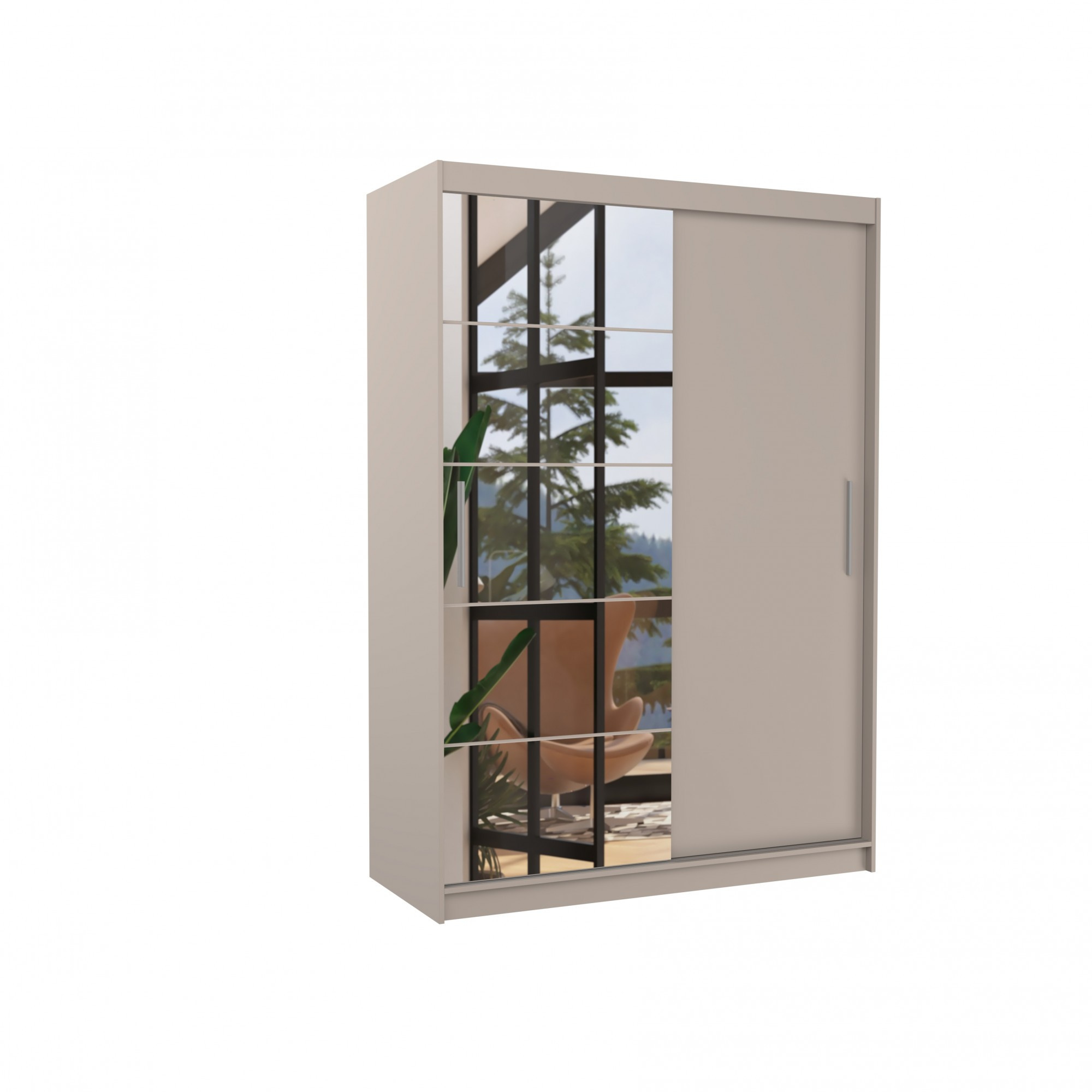 Šatní skříň s posuvnými dveřmi a zrcadlem ESTI 150 Kašmír+Kašmír