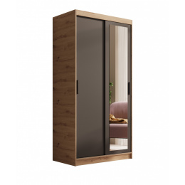 Šatní skříň s posuvnými dveřmi a zrcadlem Hailey 100 Artisan+Černá